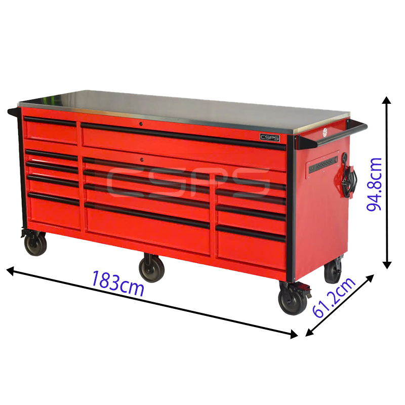 CSPS Tool Cabinet 183cm - 14 Drawers Matte Red