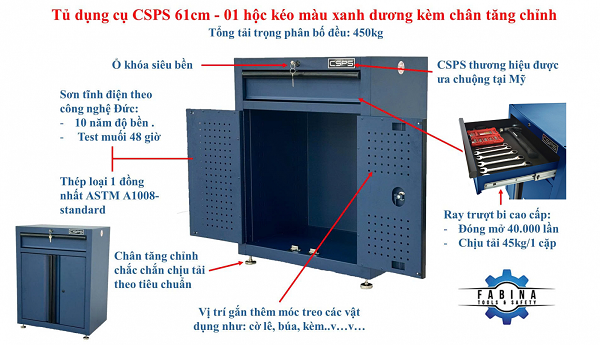 CSPS Blue Tool Cabinet 61cm include leveling feet - 01 Drawer