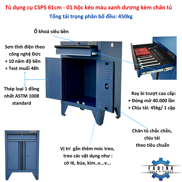 CSPS Blue Tool Cabinet 61cm with Cabinet Legs - 1 Drawer