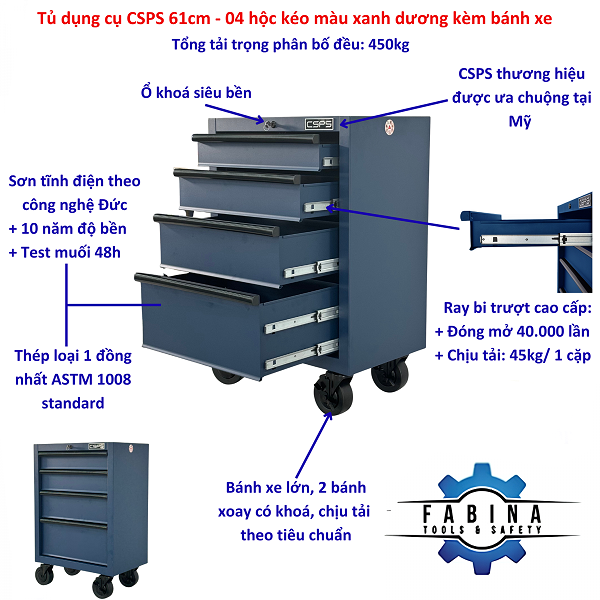 CSPS Blue tool cabinet 61cm with casters - 04 drawers