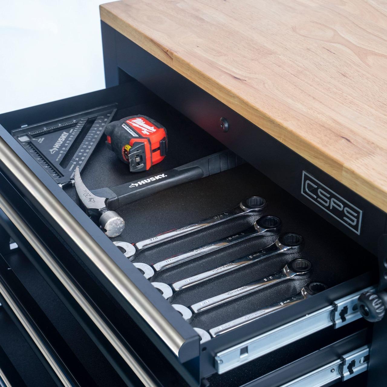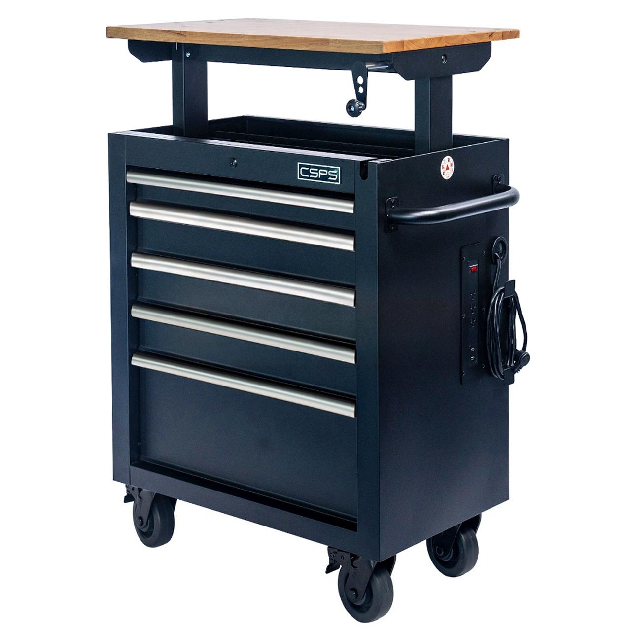 CSPS Matt Black Tool Cabinet 76 cm with Lift-up Top – 05 drawers (white handles)
