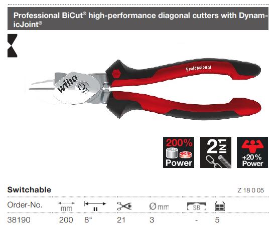 Kìm cắt cộng lực Wiha 38190 200mm nút bấm Bicut