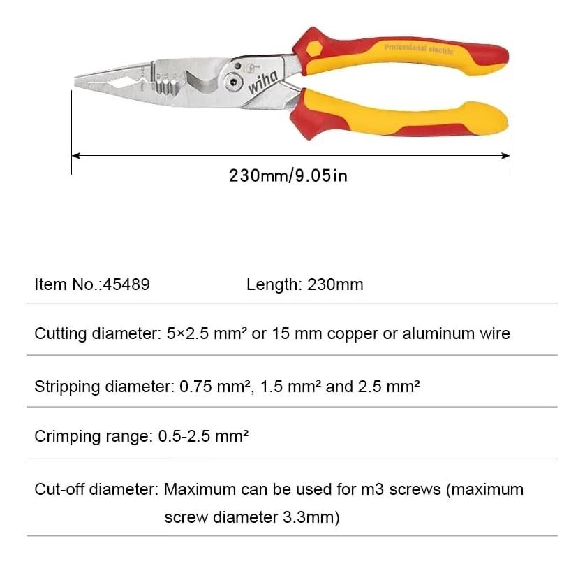 - Kìm Wiha 45489 thuộc dòng Professional electric của Wiha, tất cả kìm đều phải được kiểm tra, đạt tiêu chuẩn cách điện IEC 60900, đảm bảo người dùng làm việc an toàn trong môi trường điện lên tới 1.000 V AC