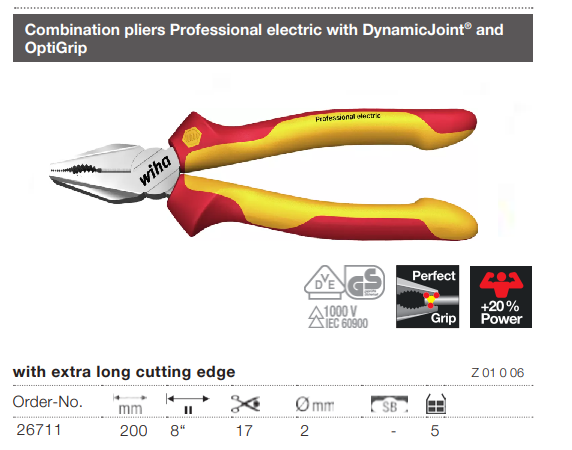Kìm đa năng Wiha 26711 200mm cách điện 1000V