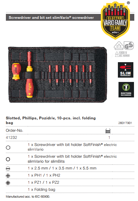 - 1x screwdriver with bit holder SoftFinish® electric slimVario for slimBits 6.0 mm (34577)
