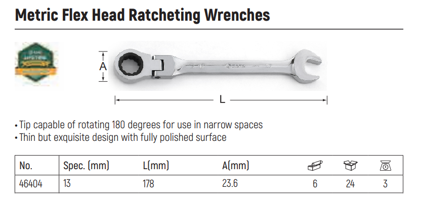 Flexible Combination Ratcheting Wrench 13mm SATA SC46404