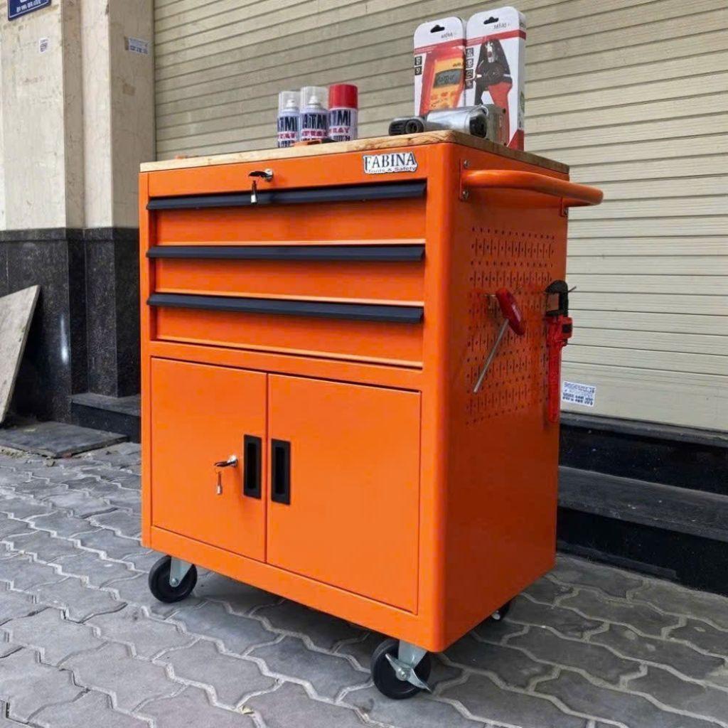 Fabina Orange Tool Cabinet with 3 Drawers and 2 Storage Compartments