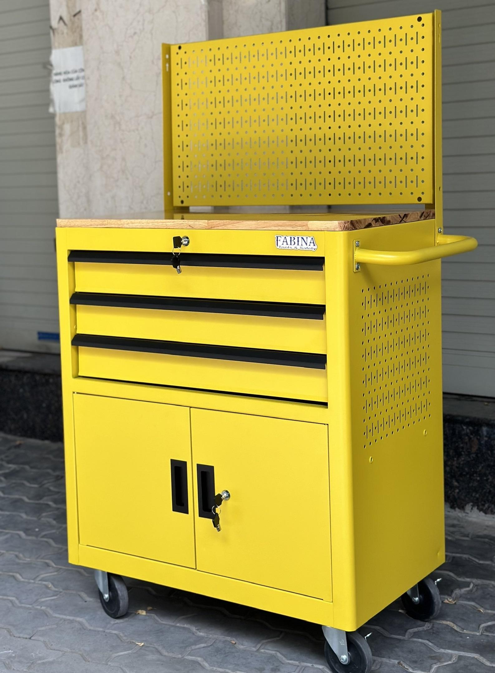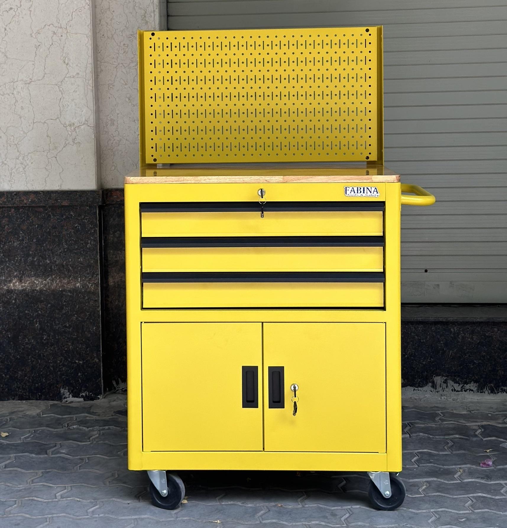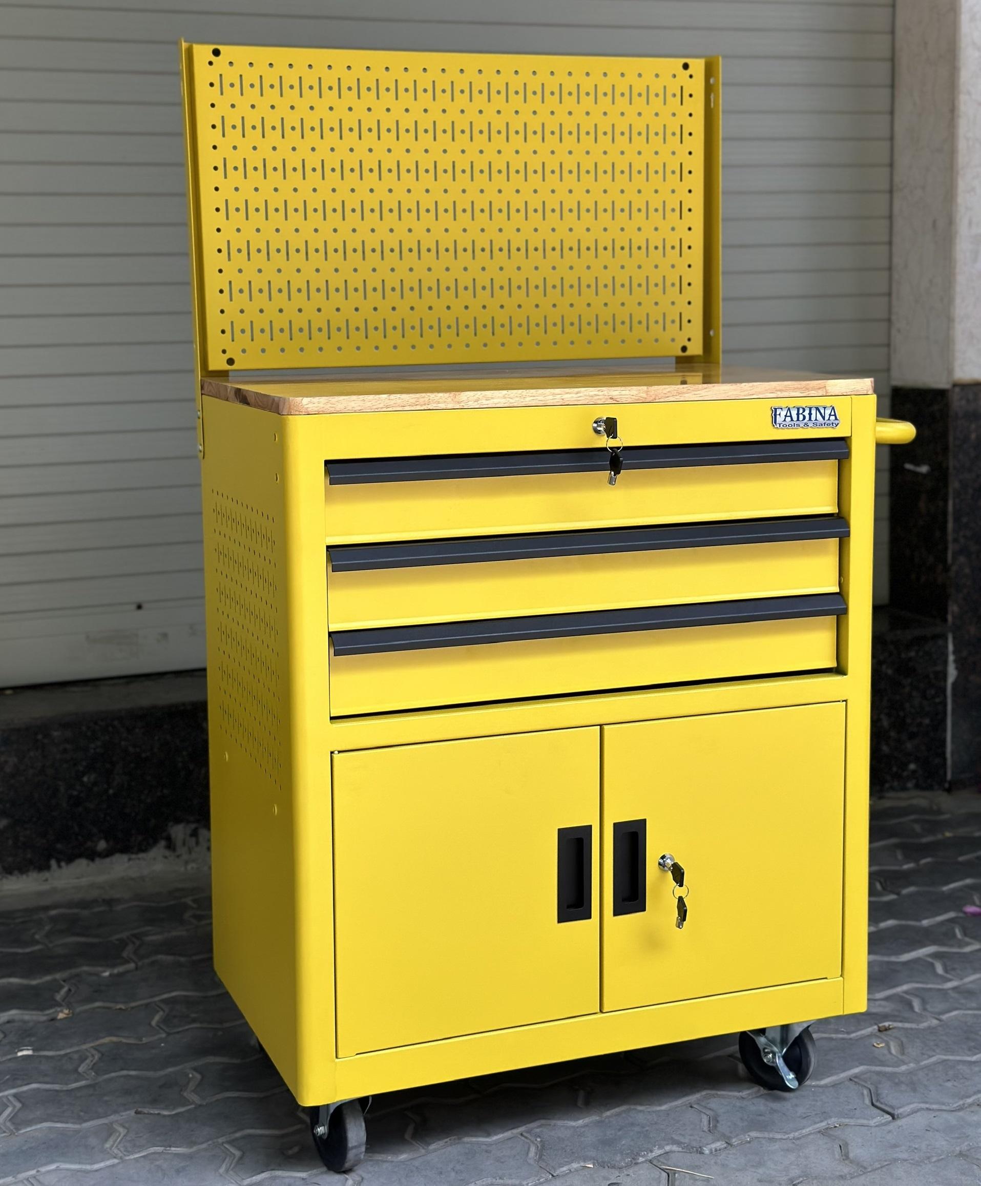 Fabina Yellow Tool Cabinet with 3 Drawers and 2 Storage Compartments with Pegboard