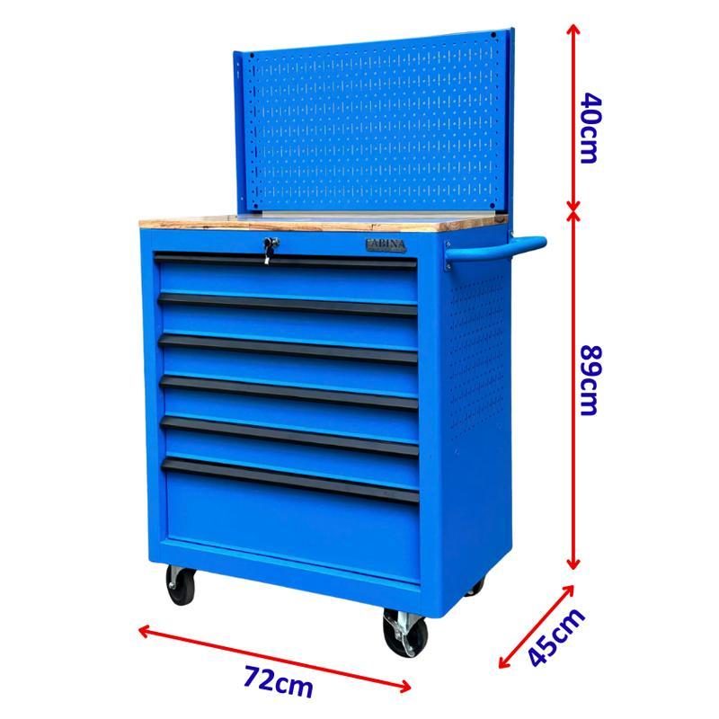 Fabina Blue 6-Drawer Tool Cabinet with Pegboard Panel