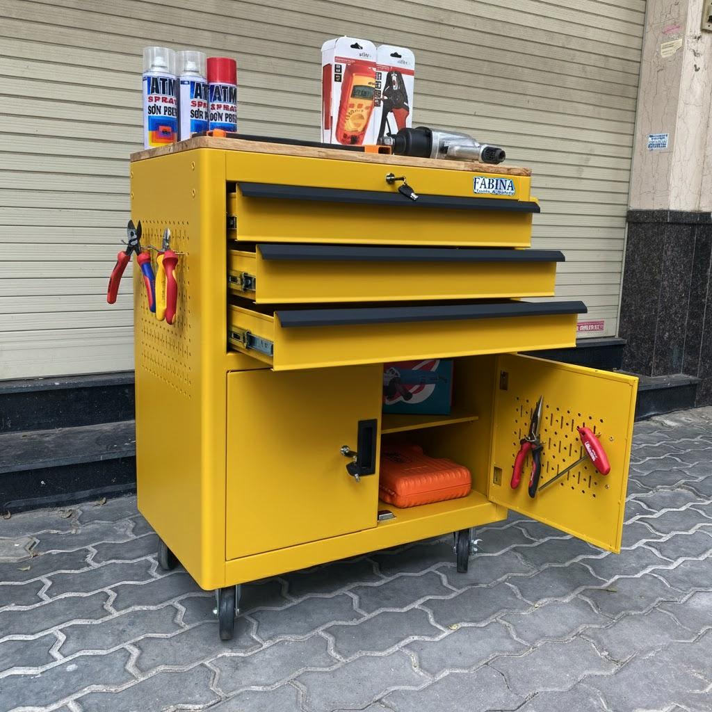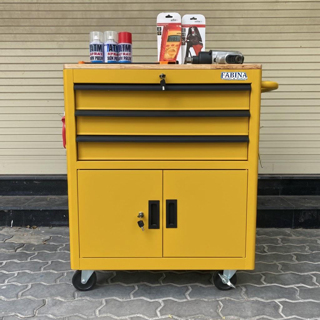 Tủ dụng cụ 3 hộc kéo 2 ngăn chứa màu vàng Fabina