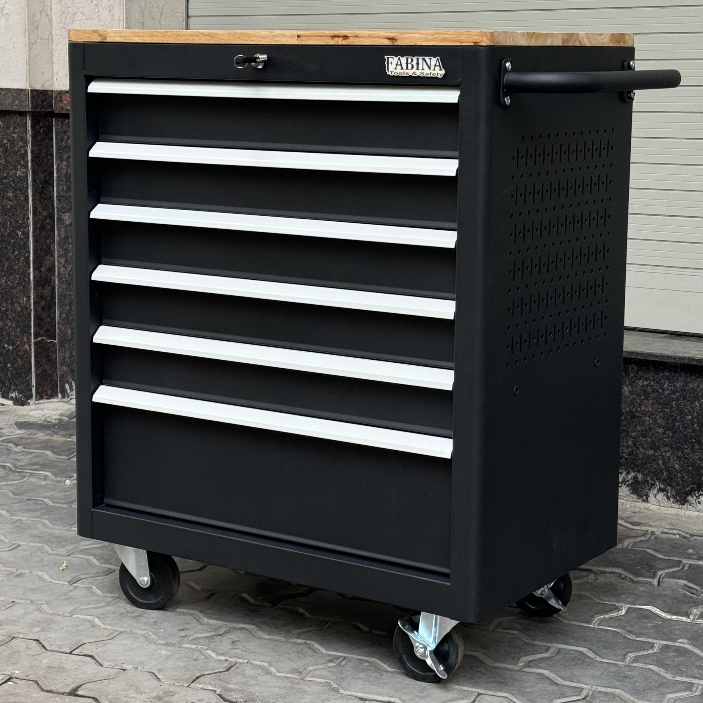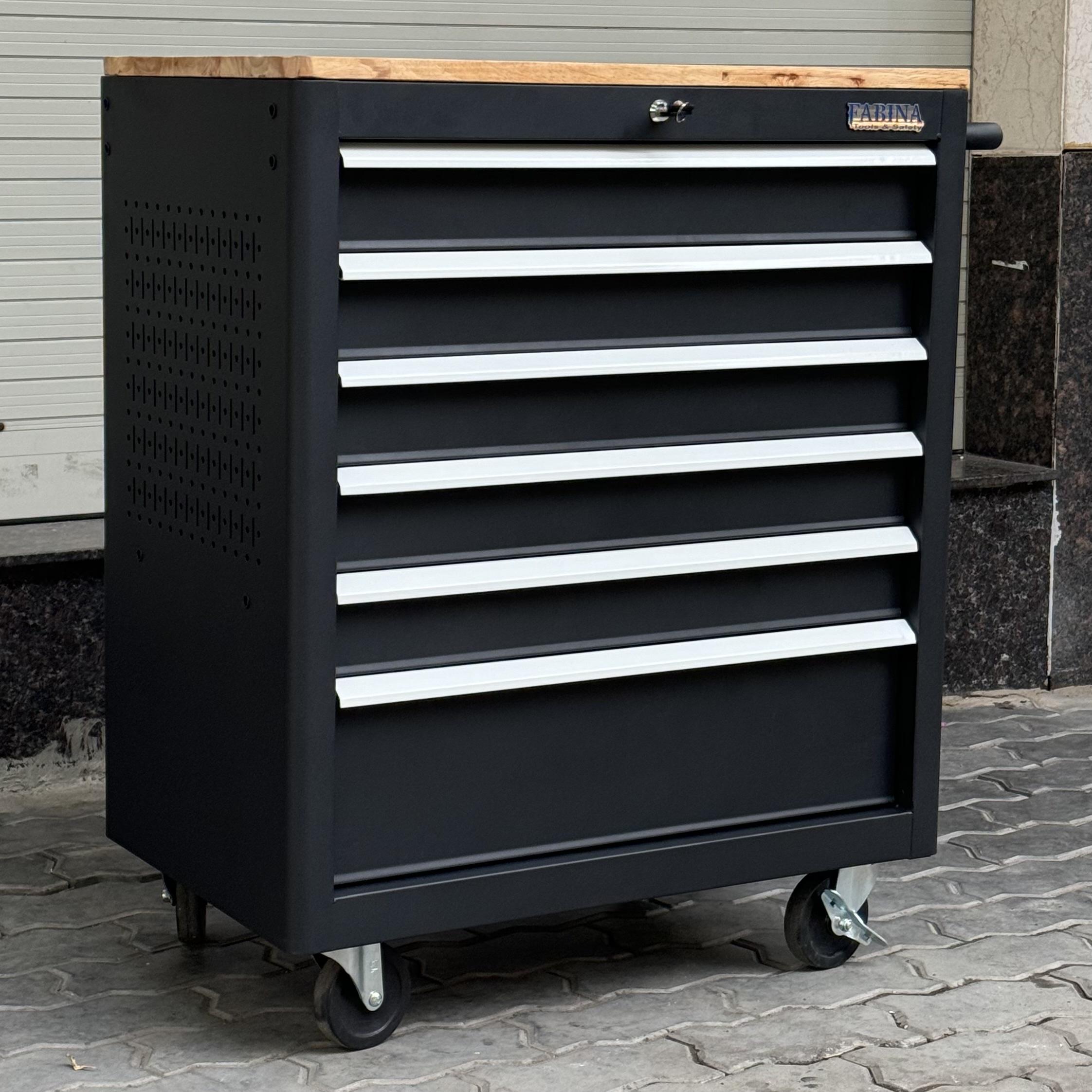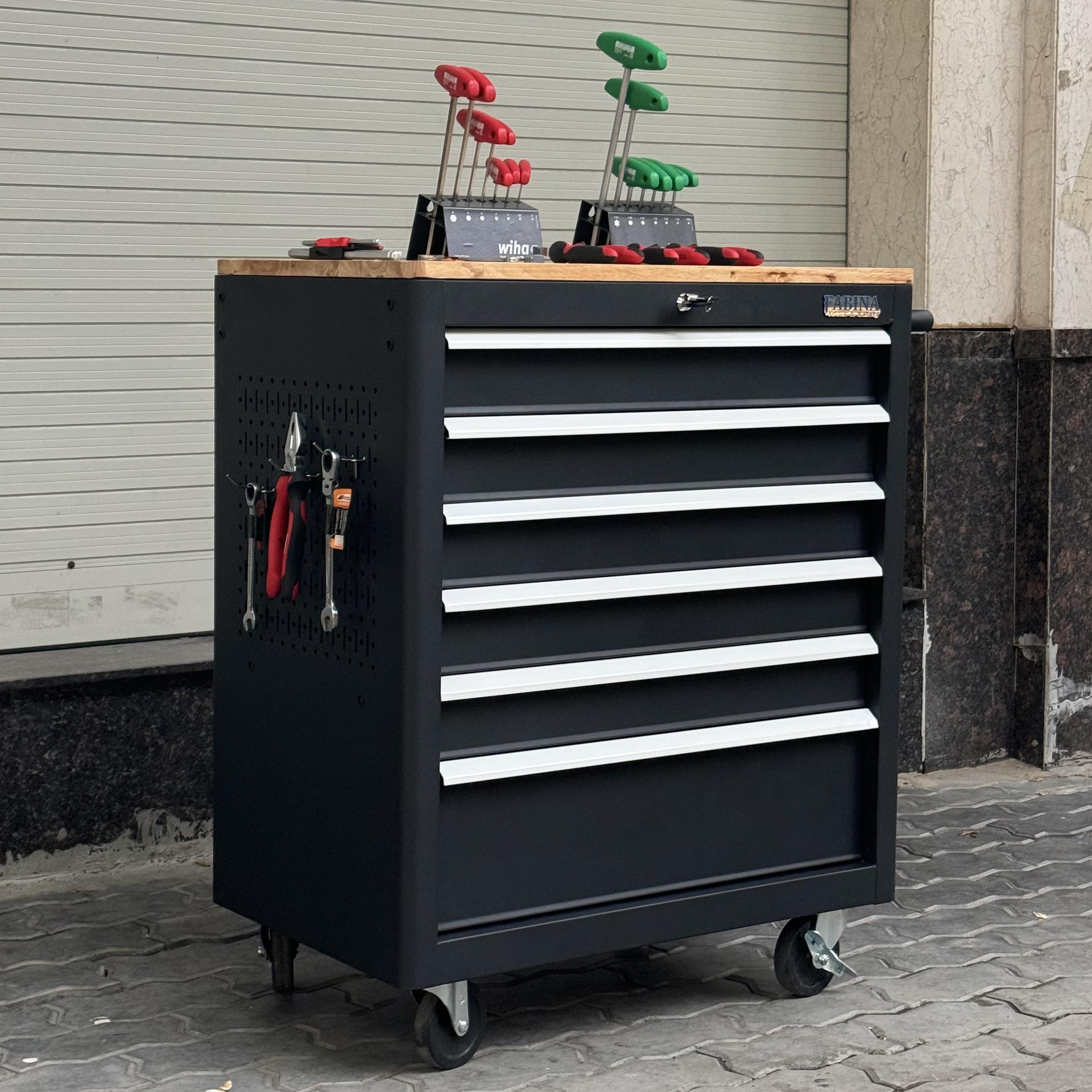 Tủ dụng cụ 6 hộc kéo màu đen Fabina. Chứa dụng cụ, đồ nghề, văn phòng phẩm. Tủ di động, phù hợp với nhà máy, garage, cửa hàng, văn phòng. Ray trượt bi. Sơn tĩnh điện.