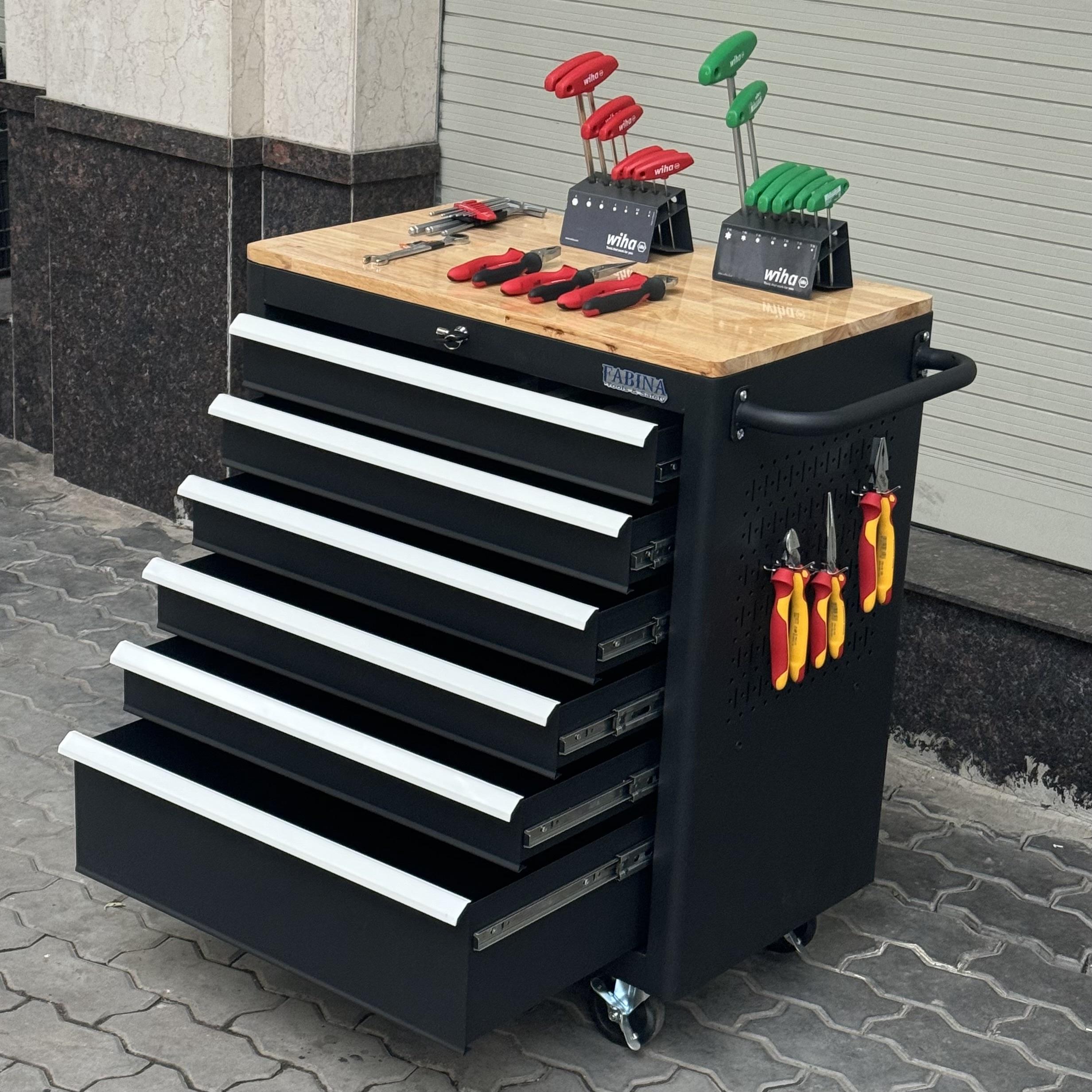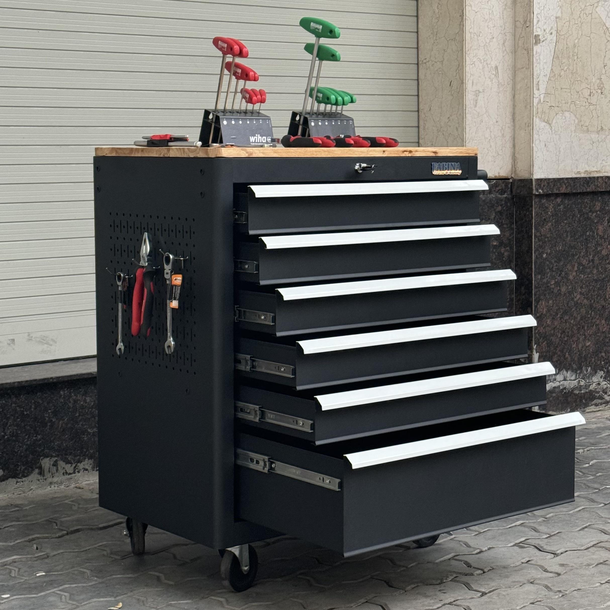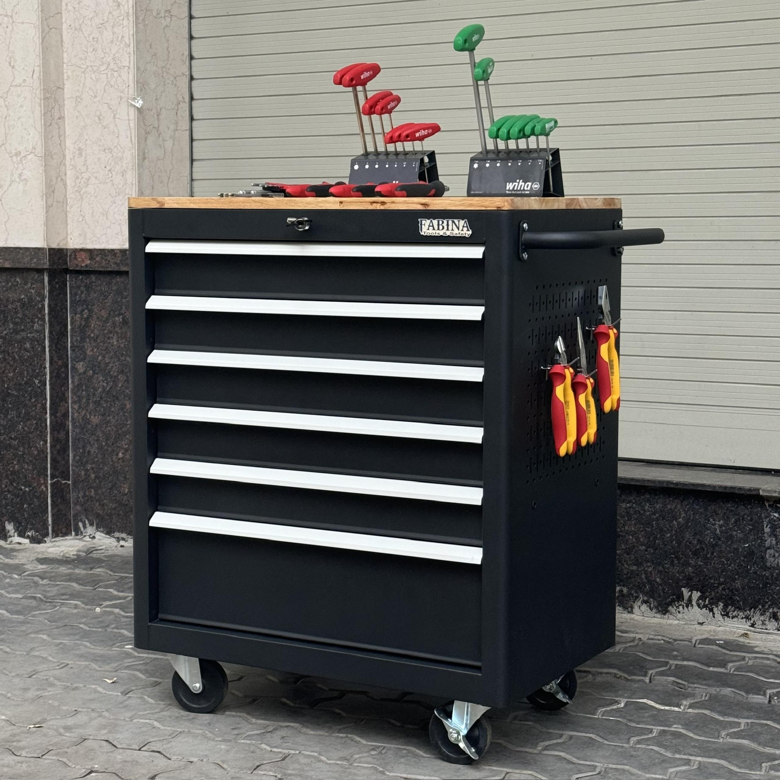 Tủ dụng cụ 6 hộc kéo màu đen Fabina. Chứa dụng cụ, đồ nghề, văn phòng phẩm. Tủ di động, phù hợp với nhà máy, garage, cửa hàng, văn phòng. Ray trượt bi. Sơn tĩnh điện.