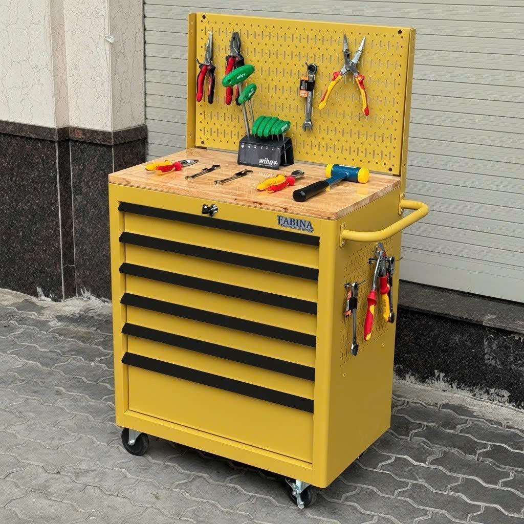 Tủ dụng cụ 6 hộc kéo màu vàng kèm vách lưới Fabina