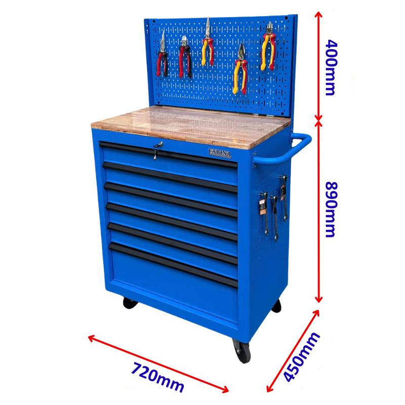 Tủ dụng cụ 6 hộc kéo màu xanh dương kèm vách lưới Fabina
