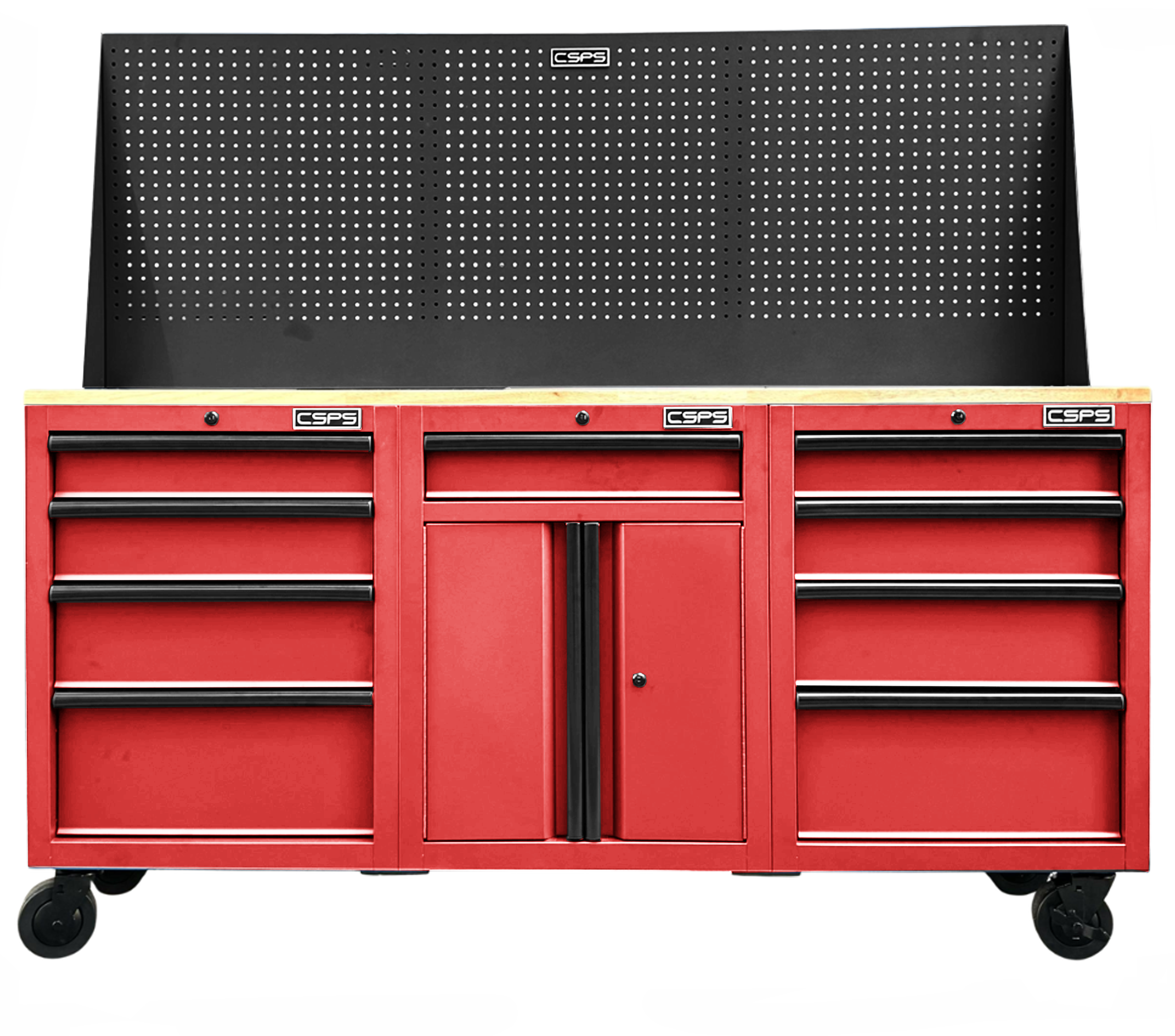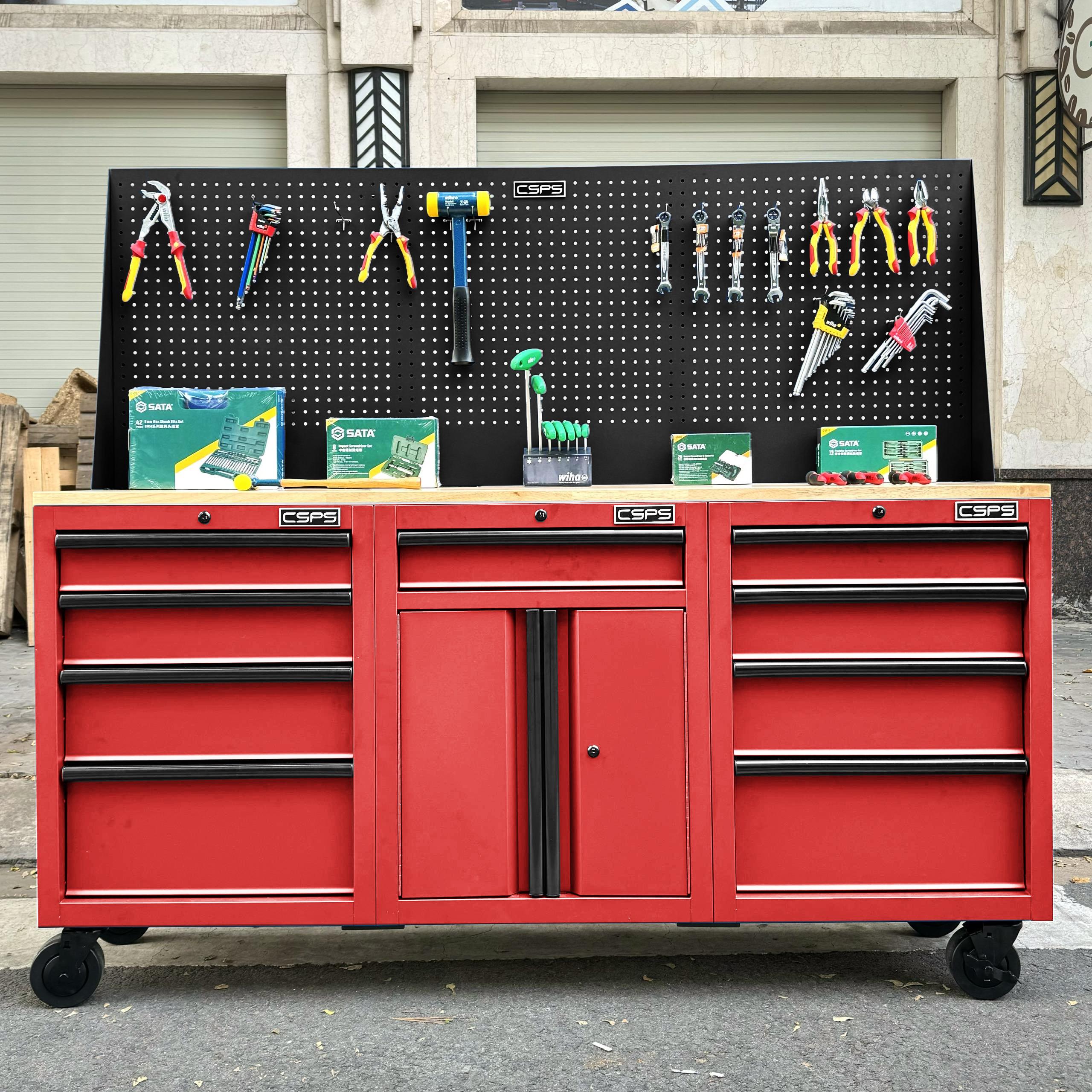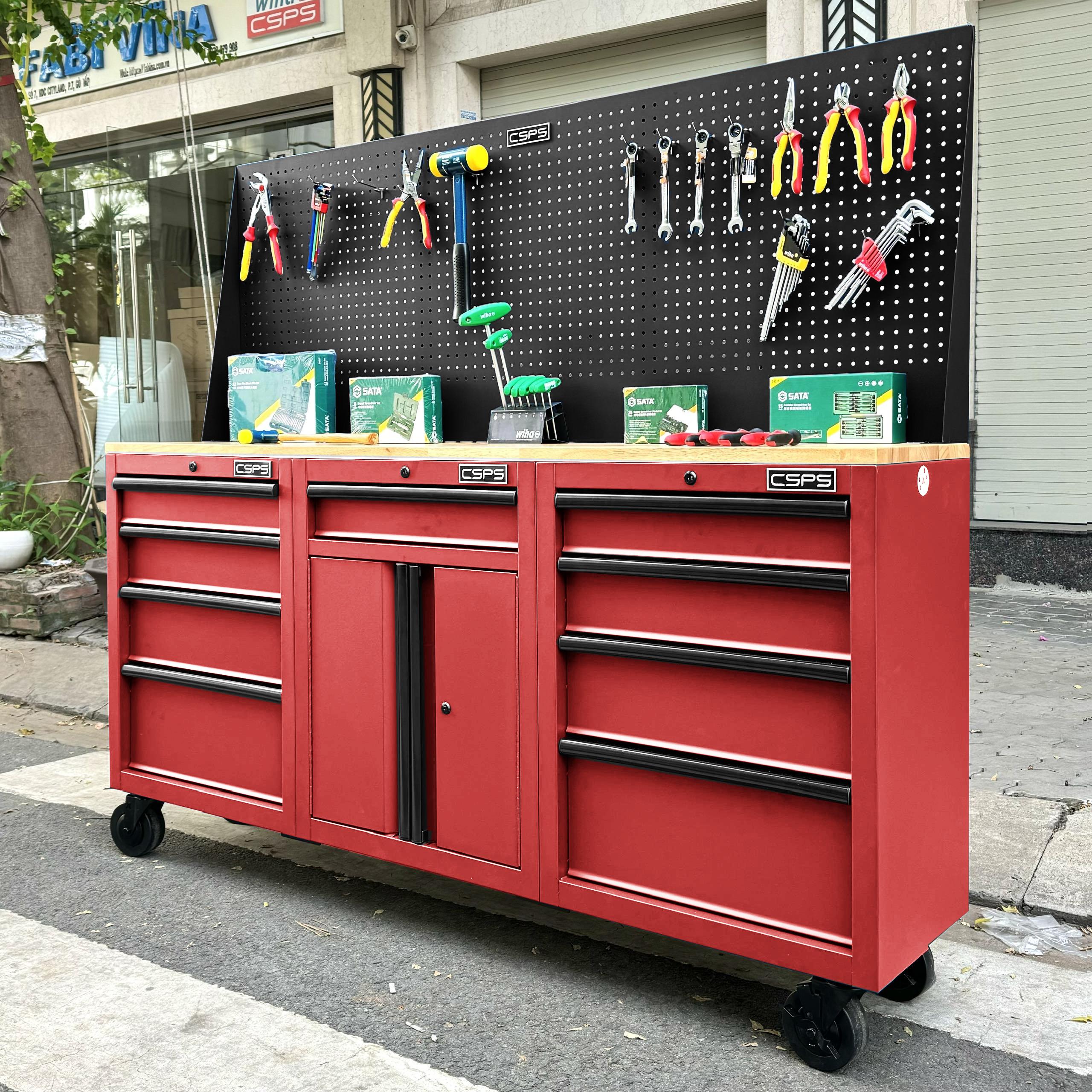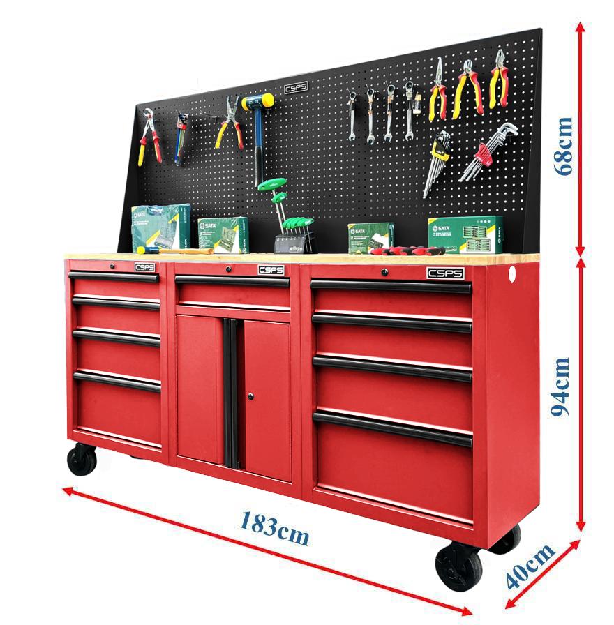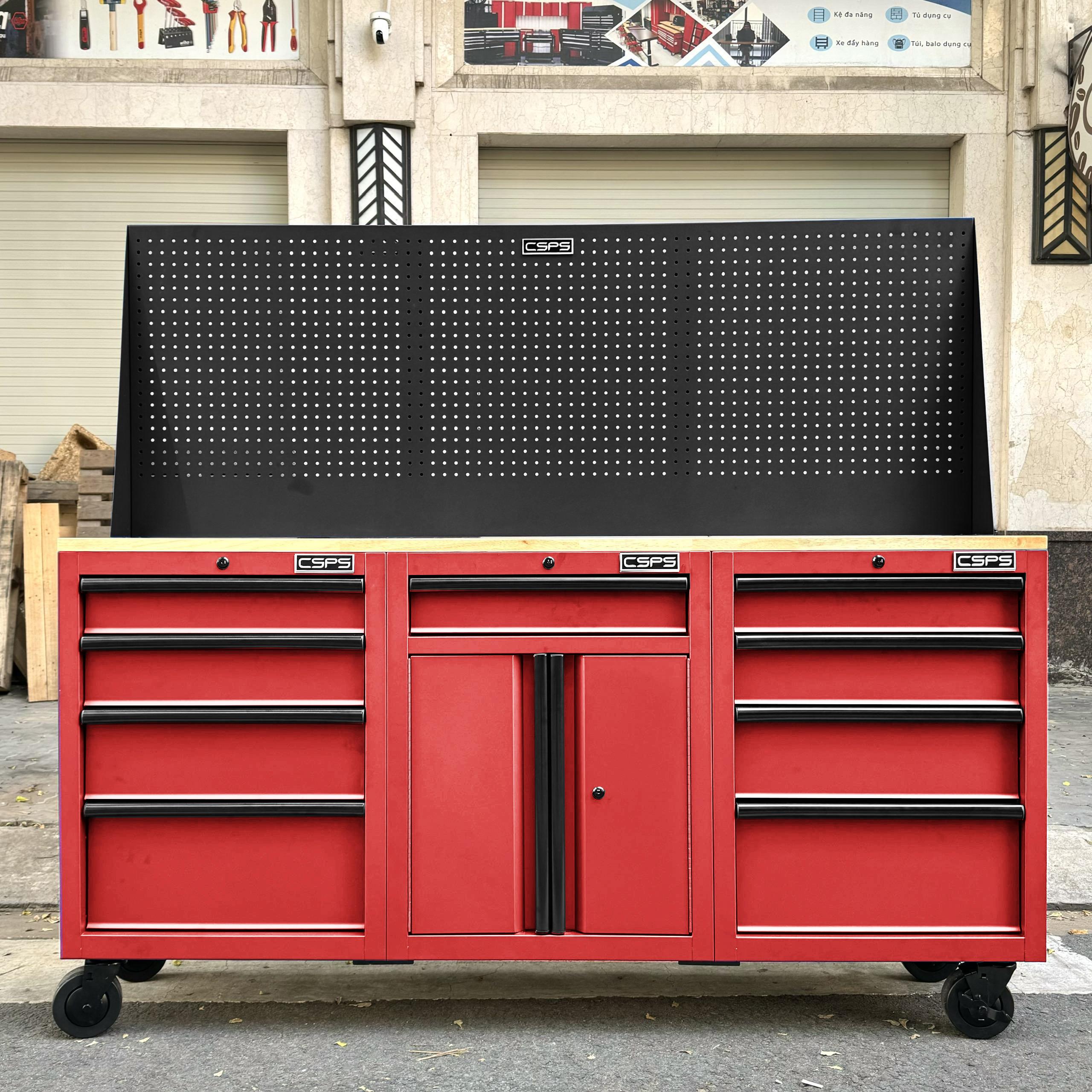 Bộ 3 Tủ dụng cụ CSPS 183cm màu đỏ mặt ván gỗ kèm vách lưới - 09 hộc kéo
