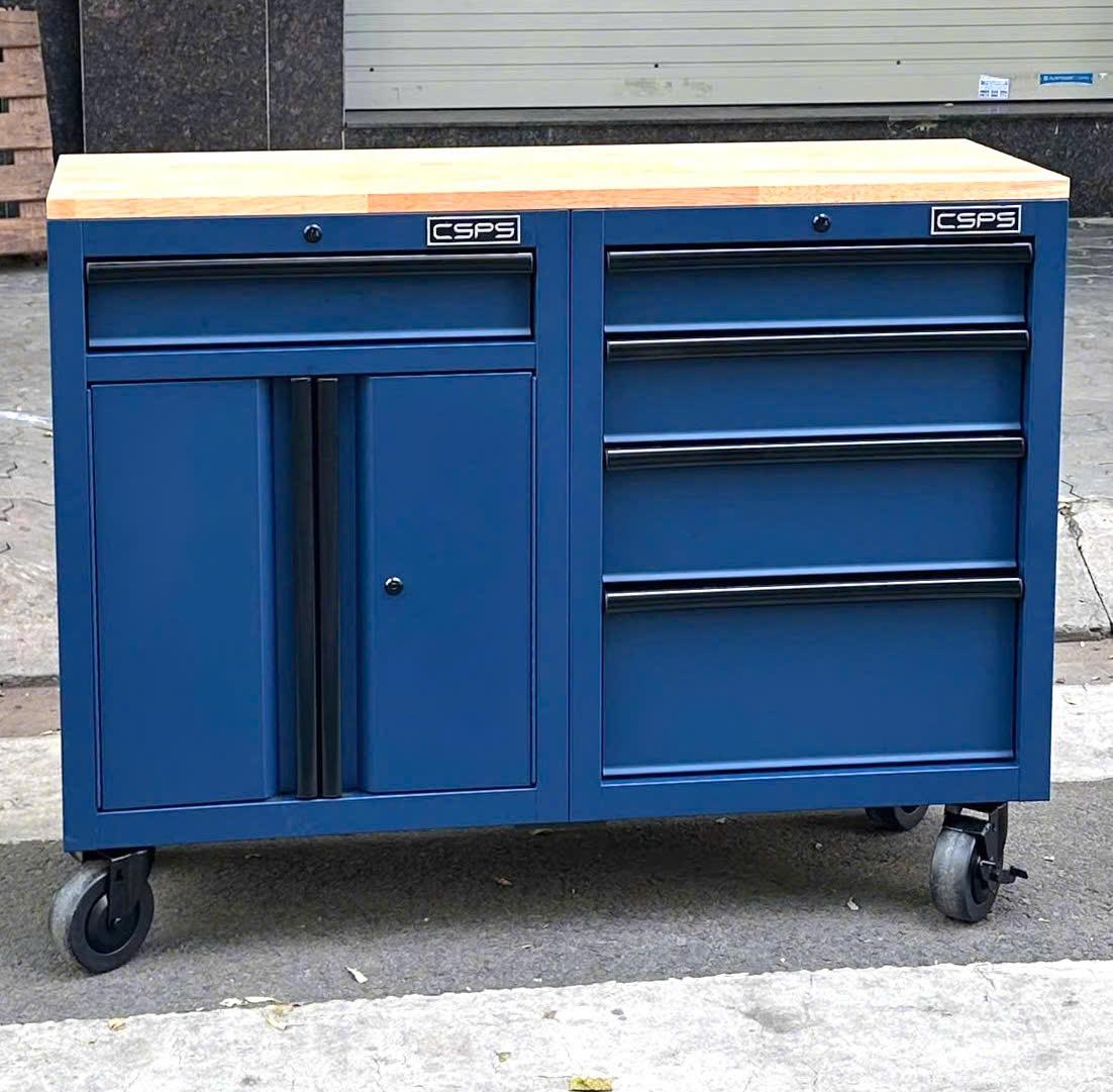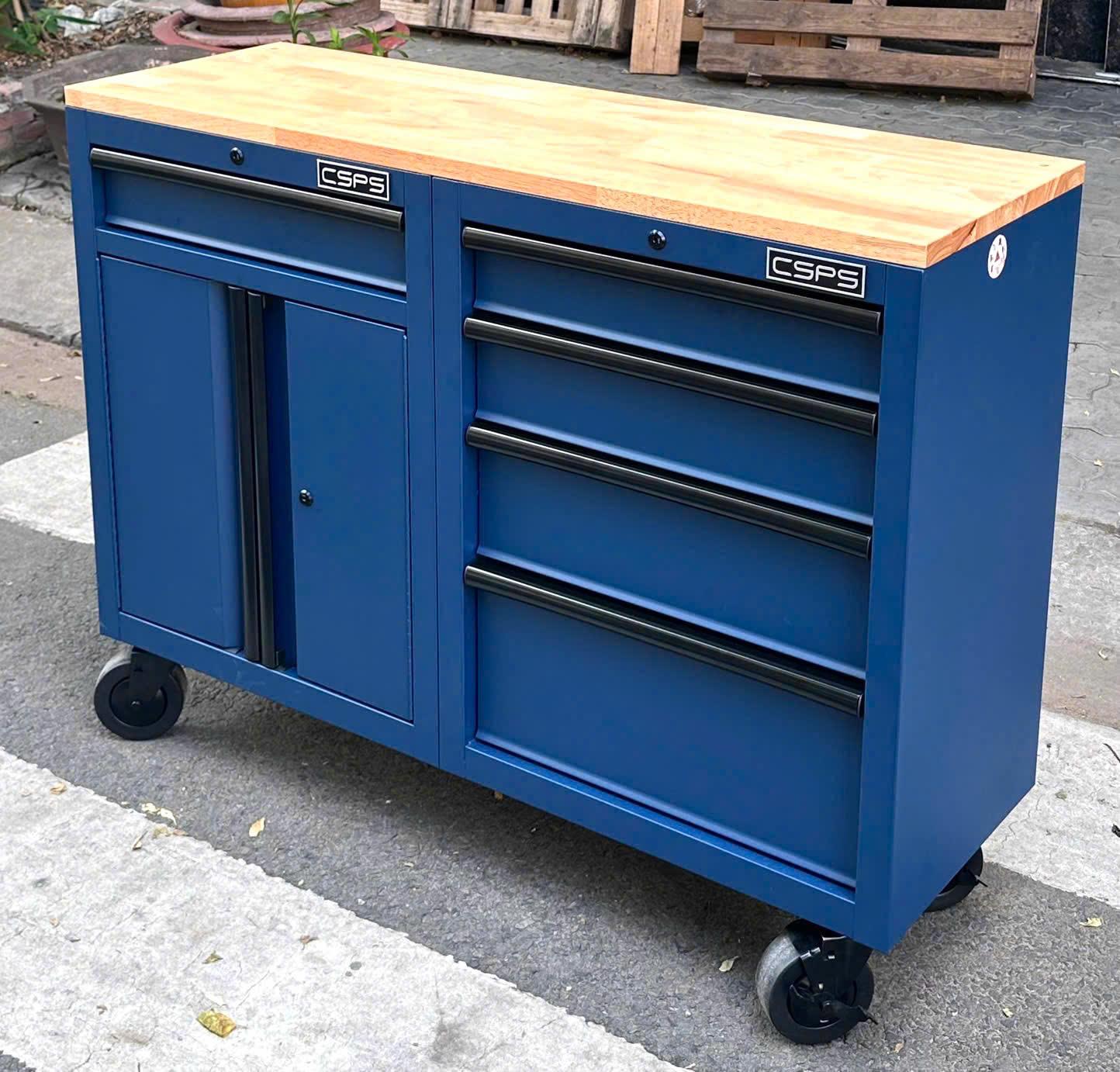 Tủ dụng cụ CSPS 122cm - 05 hộc kéo màu xanh dương mặt ván gỗ