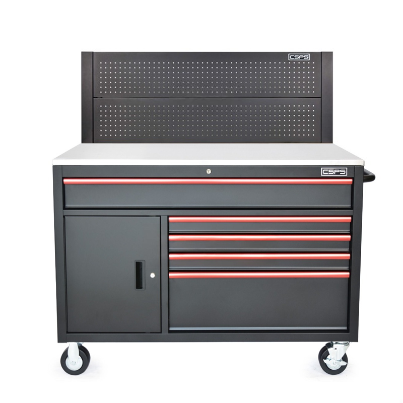 Tủ dụng cụ CSPS 132cm - 05 hộc kéo màu đen tay nắm màu đỏ kèm vách lưới