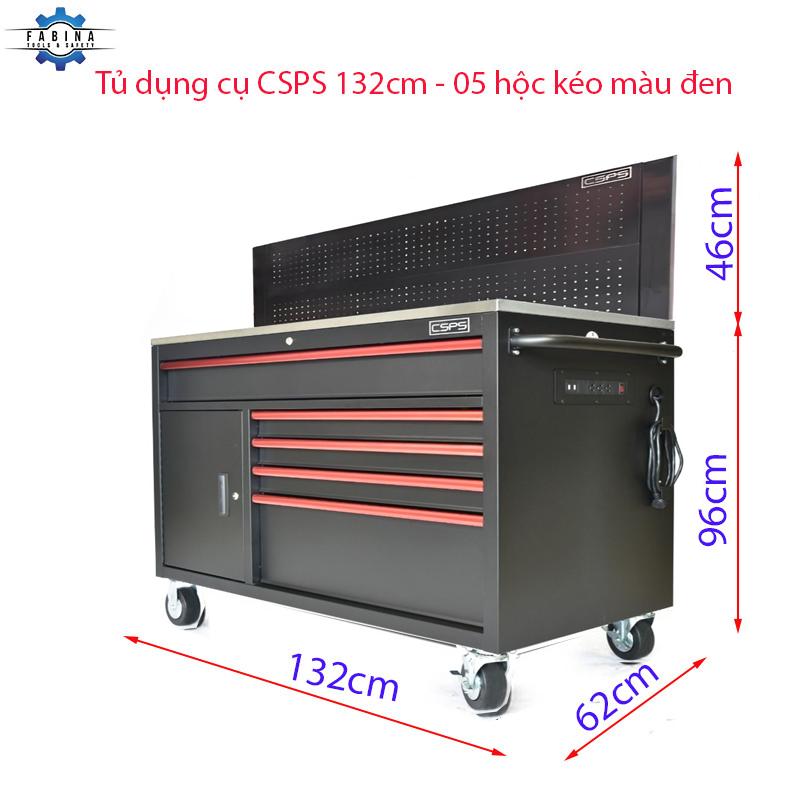 Tủ dụng cụ Tủ dụng cụ CSPS 132cm - 05 hộc kéo màu đen, giúp bạn sắp xếp khu vực làm việc hiệu quả, là một trang bị cần thiết cho nhà máy, garage, cửa hàng hay văn phòng làm việc / CSPS tool cabinet 132 cm – 05 drawers which is suitable for workshop, factory, garage, shop, office… will help you organize working area efficiently.