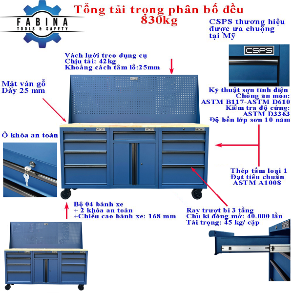 - Từ khóa: Tủ dụng cụ CSPS, Tủ đồ nghề CSPS, Tủ dụng cụ tiêu chuẩn Mỹ, Tủ CSPS