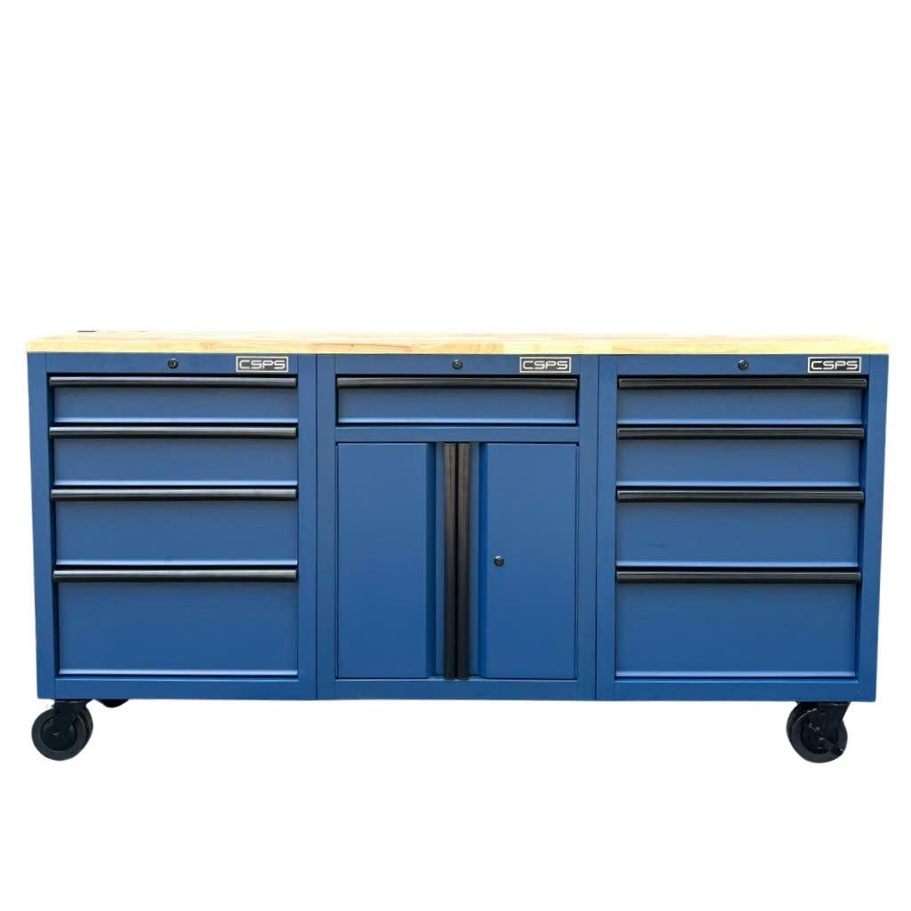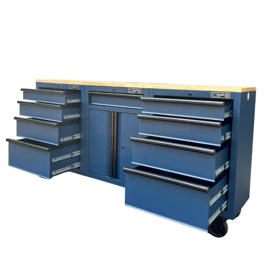 Tủ dụng cụ CSPS 183cm - 09 hộc kéo màu xanh dương mặt ván gỗ