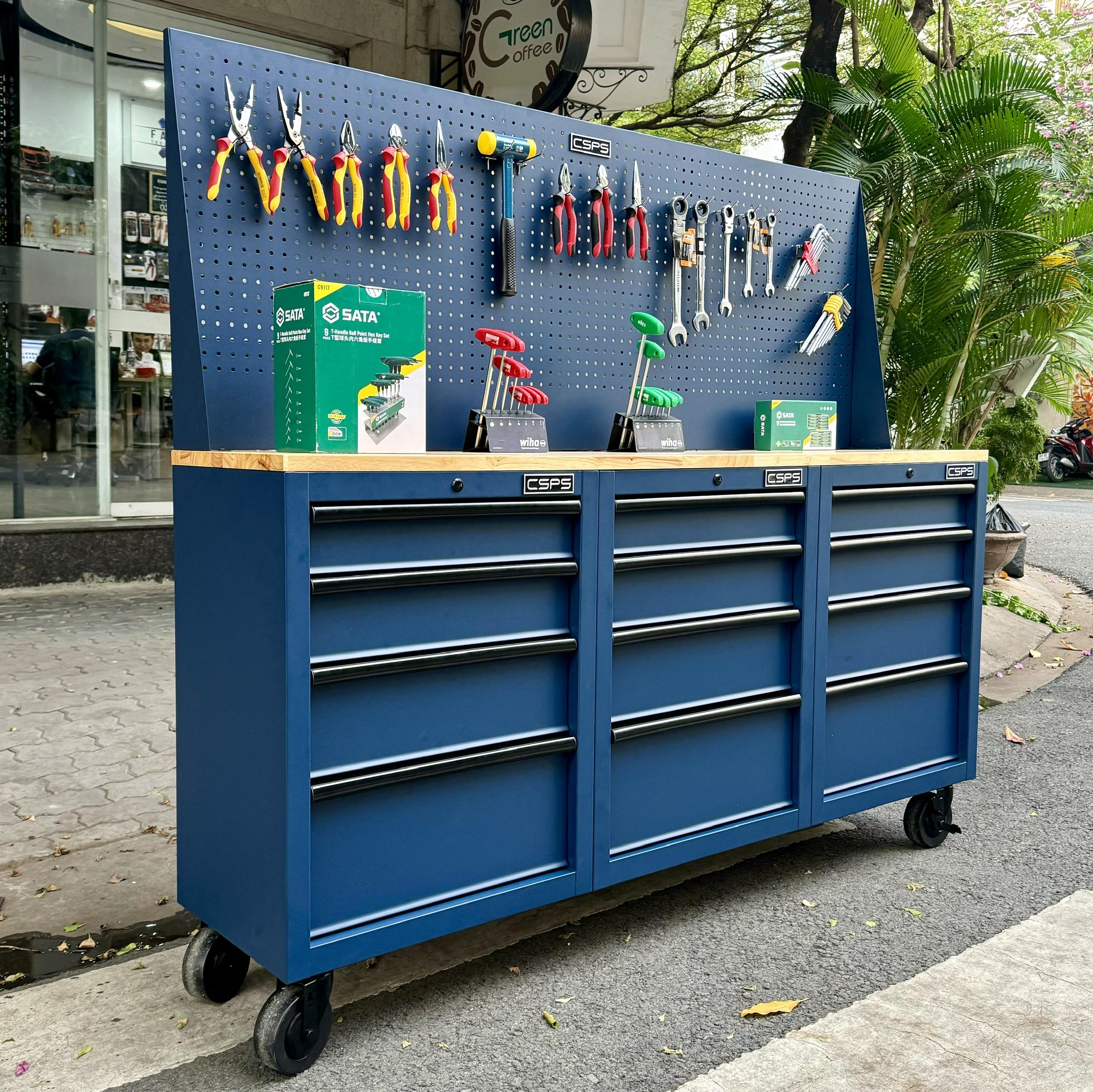 Tủ dụng cụ CSPS 183cm màu xanh dương kèm vách lưới - 12 hộc kéo