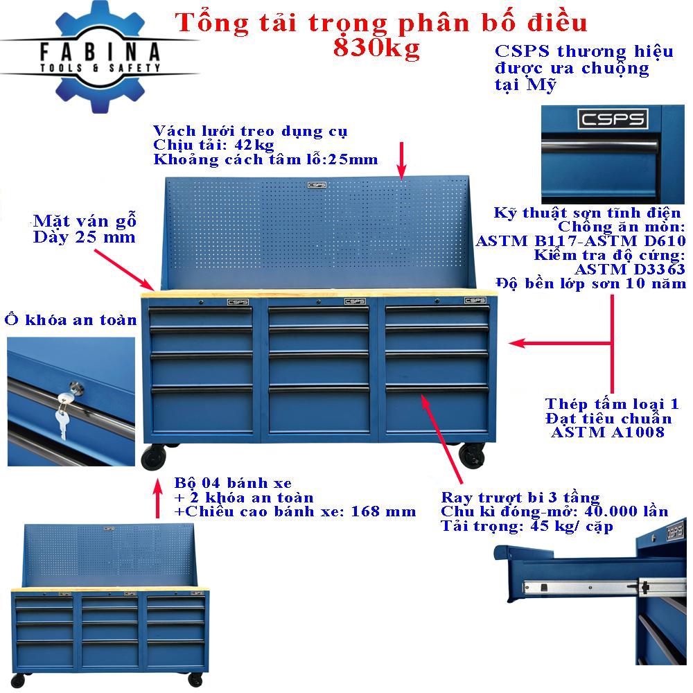 - Từ khóa: Tủ dụng cụ CSPS, Tủ đồ nghề CSPS, Tủ dụng cụ tiêu chuẩn Mỹ, Tủ CSPS
