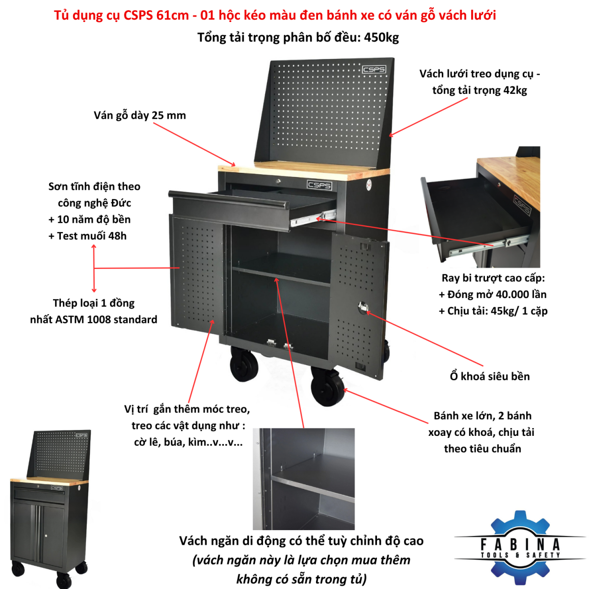 - Từ khóa: Tủ dụng cụ CSPS, Tủ đồ nghề CSPS, Tủ dụng cụ tiêu chuẩn Mỹ, Tủ CSPS