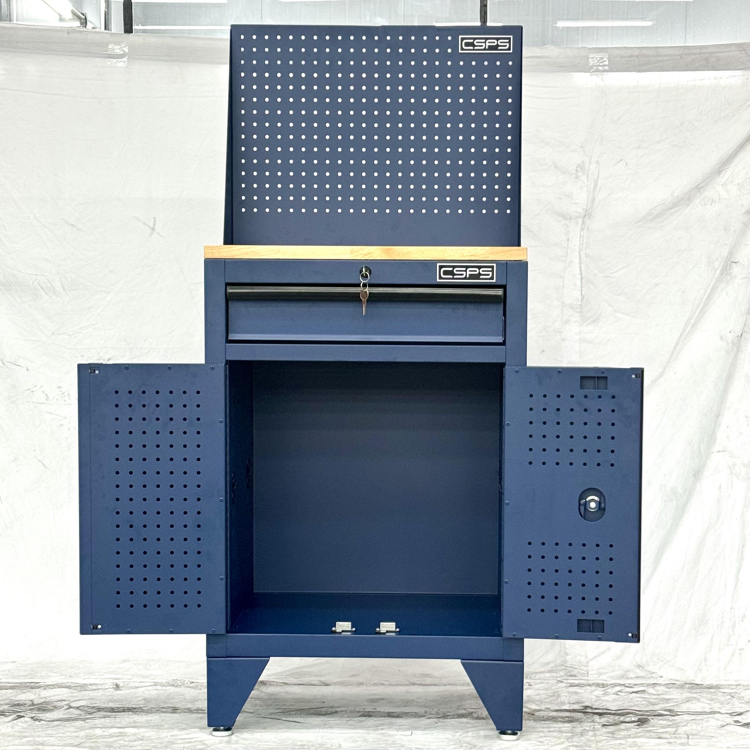 Tủ dụng cụ CSPS 61cm - 01 hộc kéo màu xanh dương kèm vách lưới ván gỗ và chân tủ
