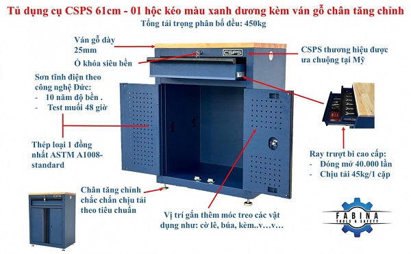 - Từ khóa: Tủ dụng cụ CSPS, Tủ đồ nghề CSPS, Tủ dụng cụ tiêu chuẩn Mỹ, Tủ CSPS