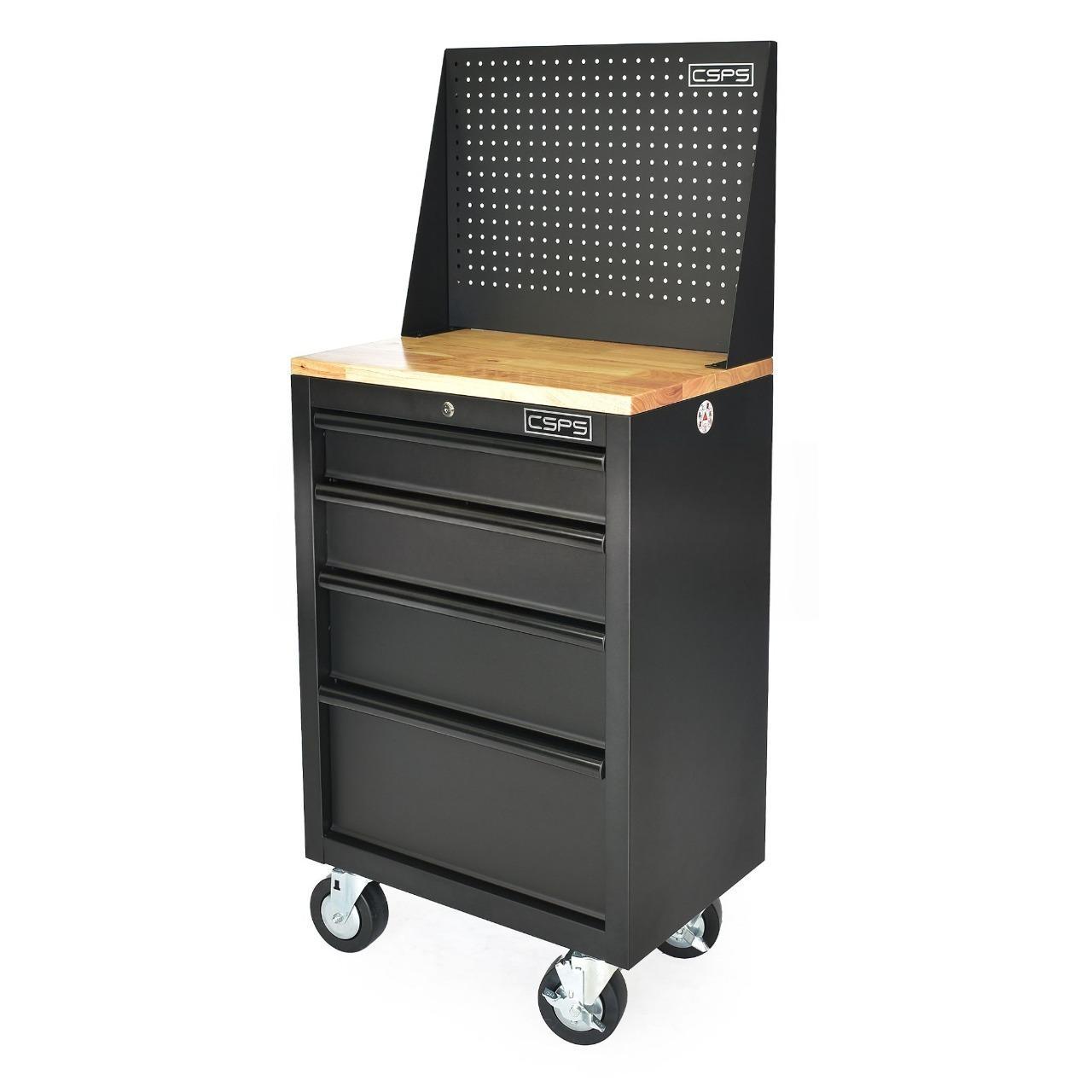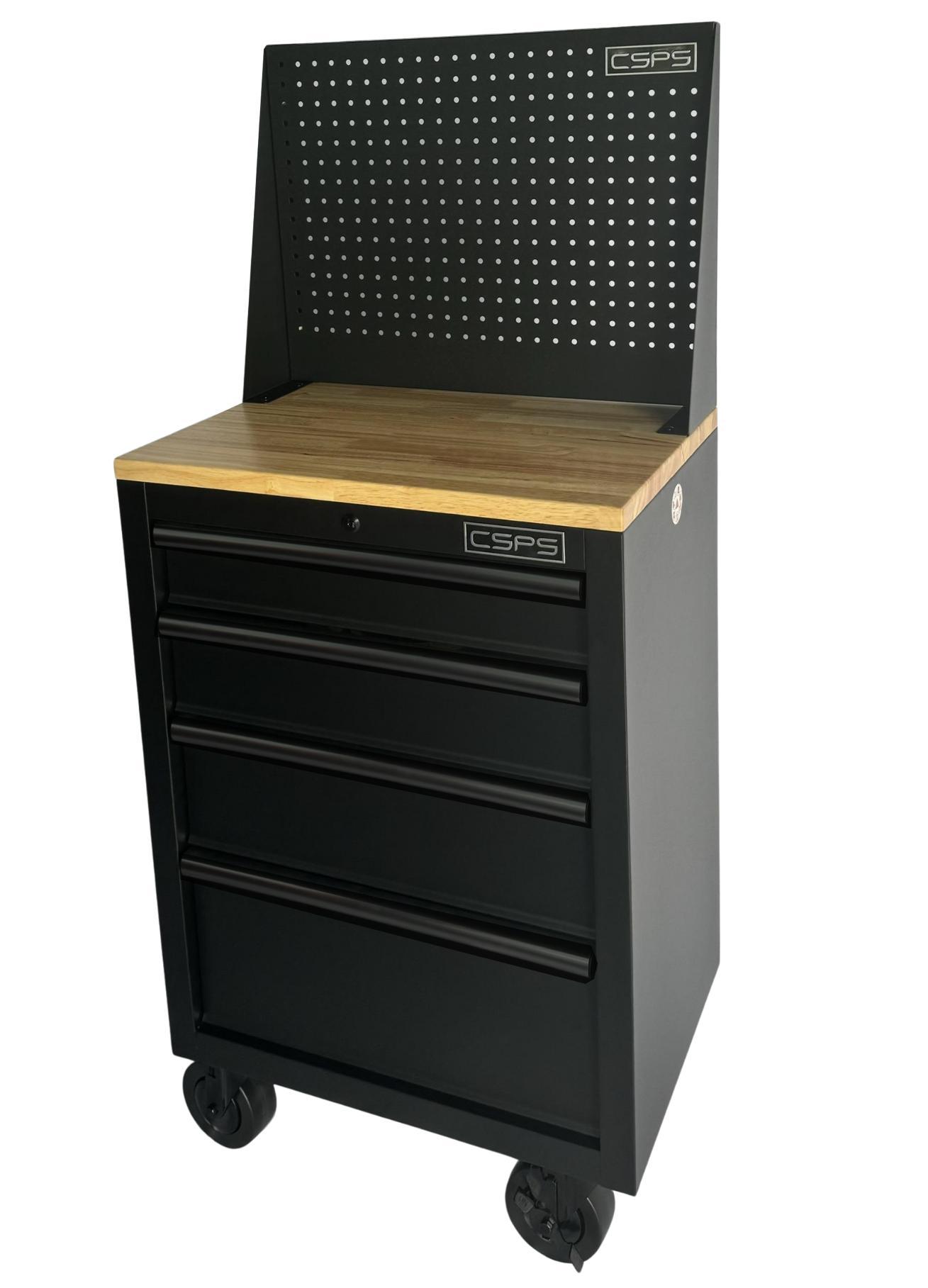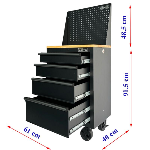 Tủ dụng cụ CSPS 61cm - 04 hộc kéo màu đen mặt ván gỗ kèm vách lưới