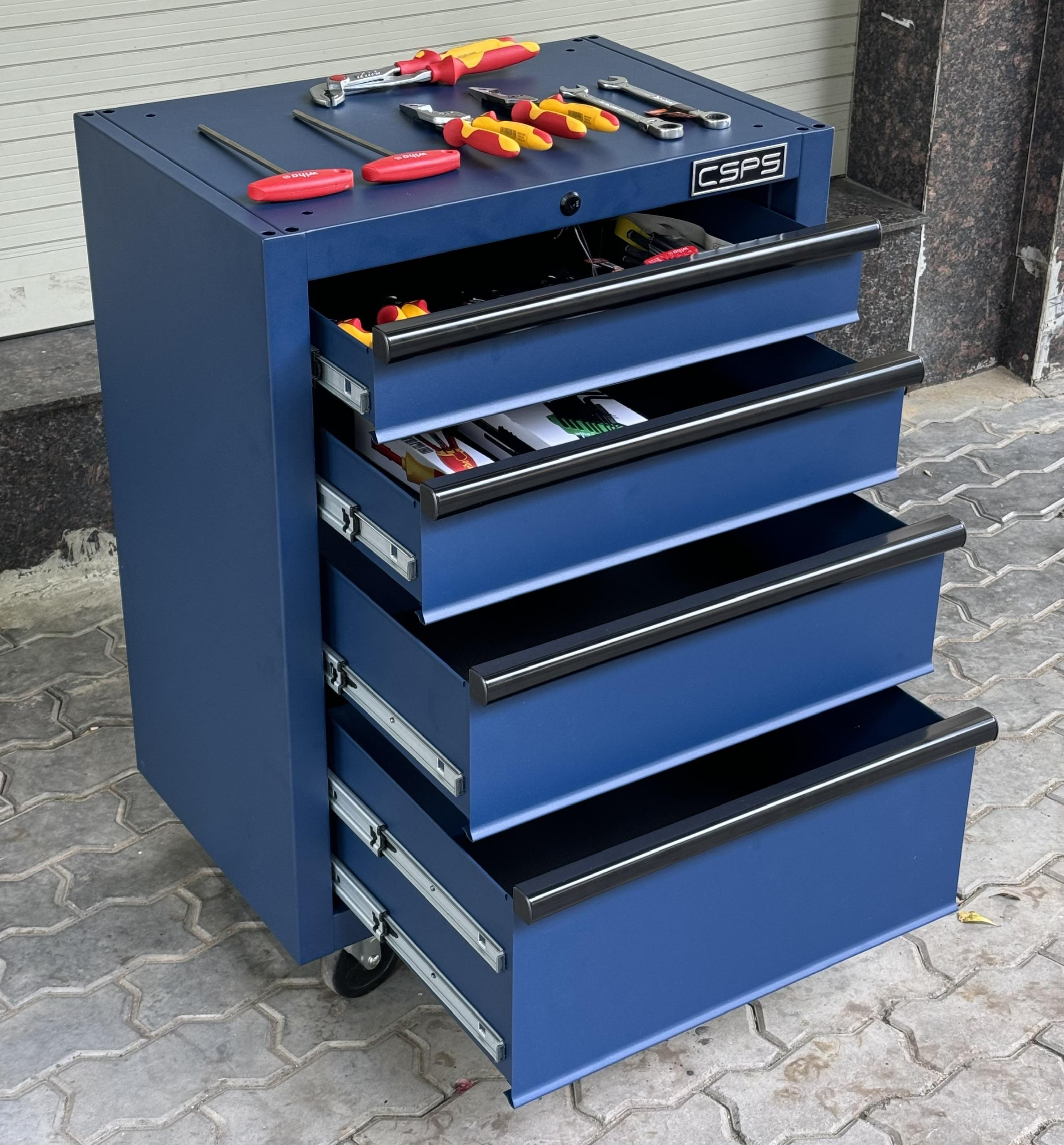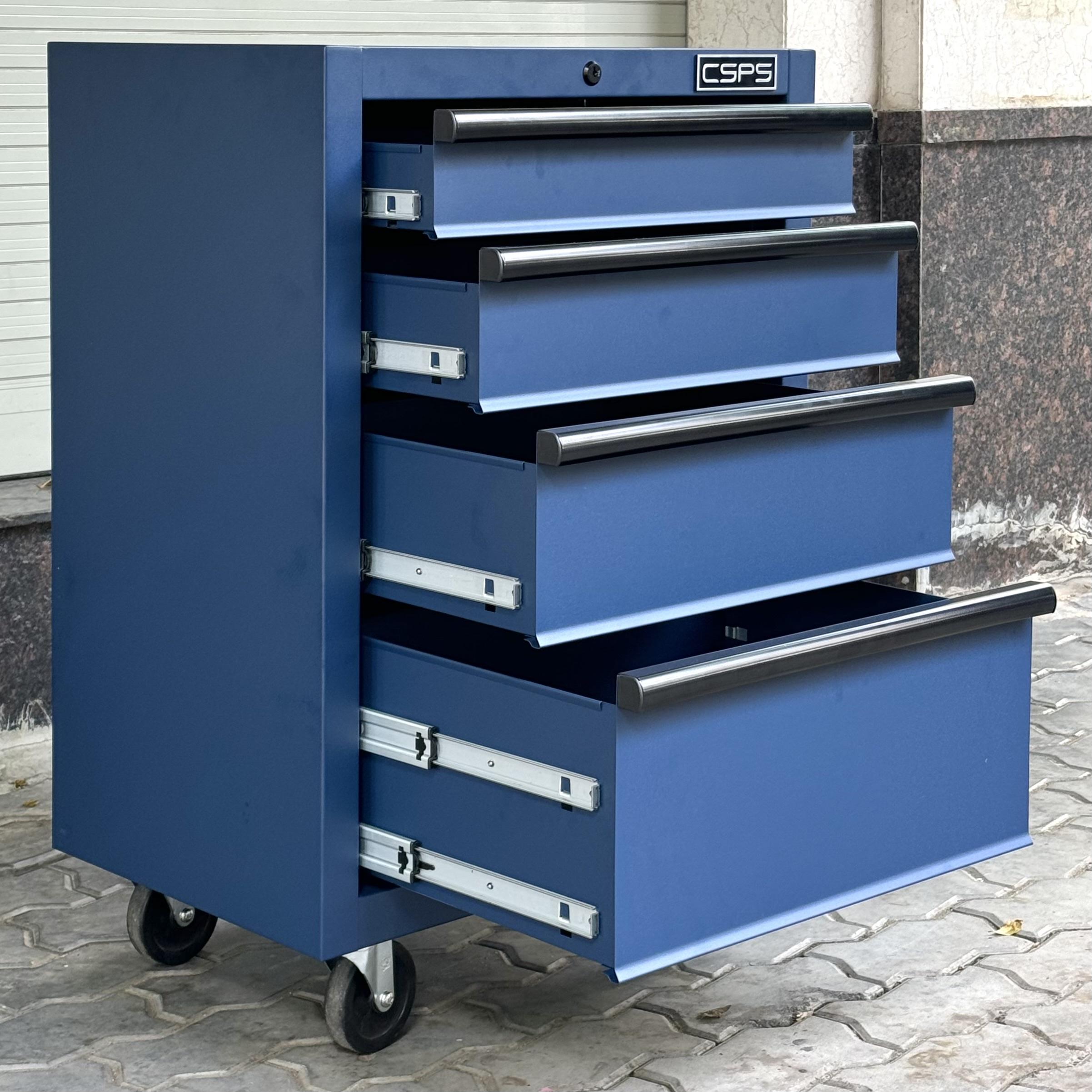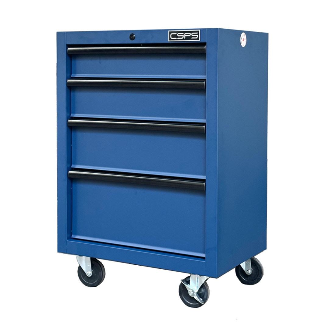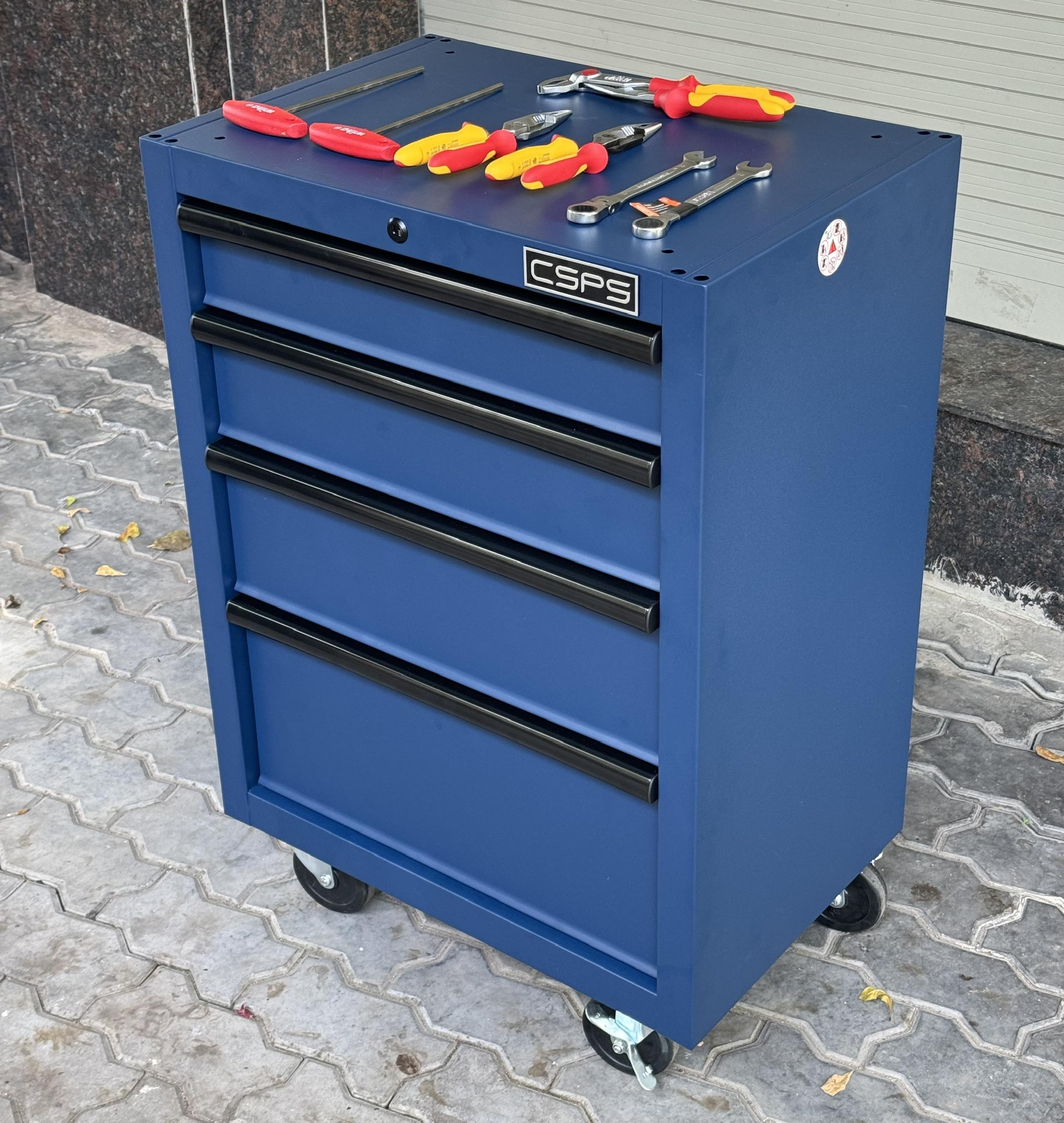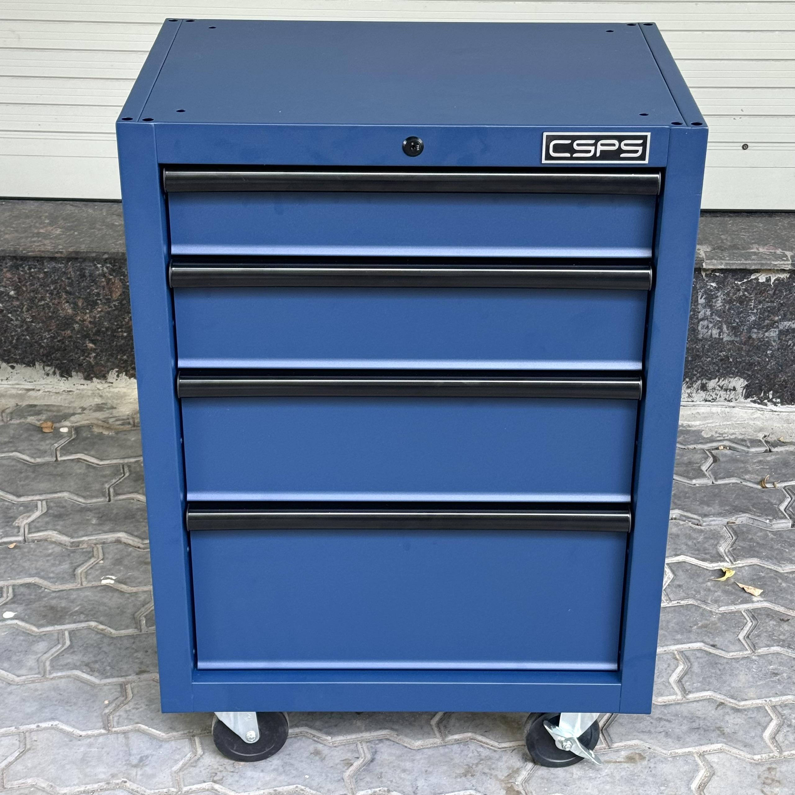 Tủ dụng cụ CSPS 61cm - 04 hộc kéo màu xanh dương kèm bánh xe Fbn 12cm