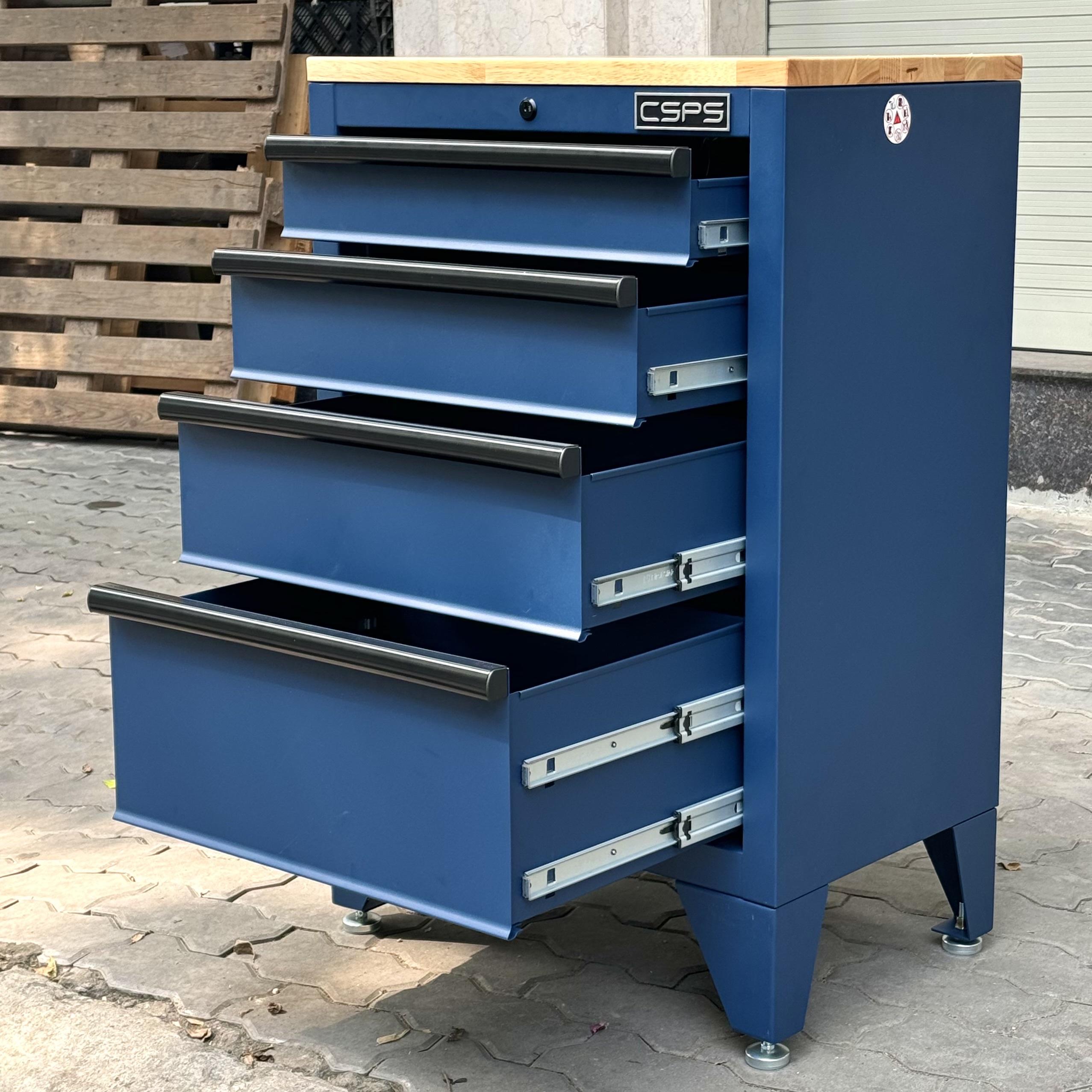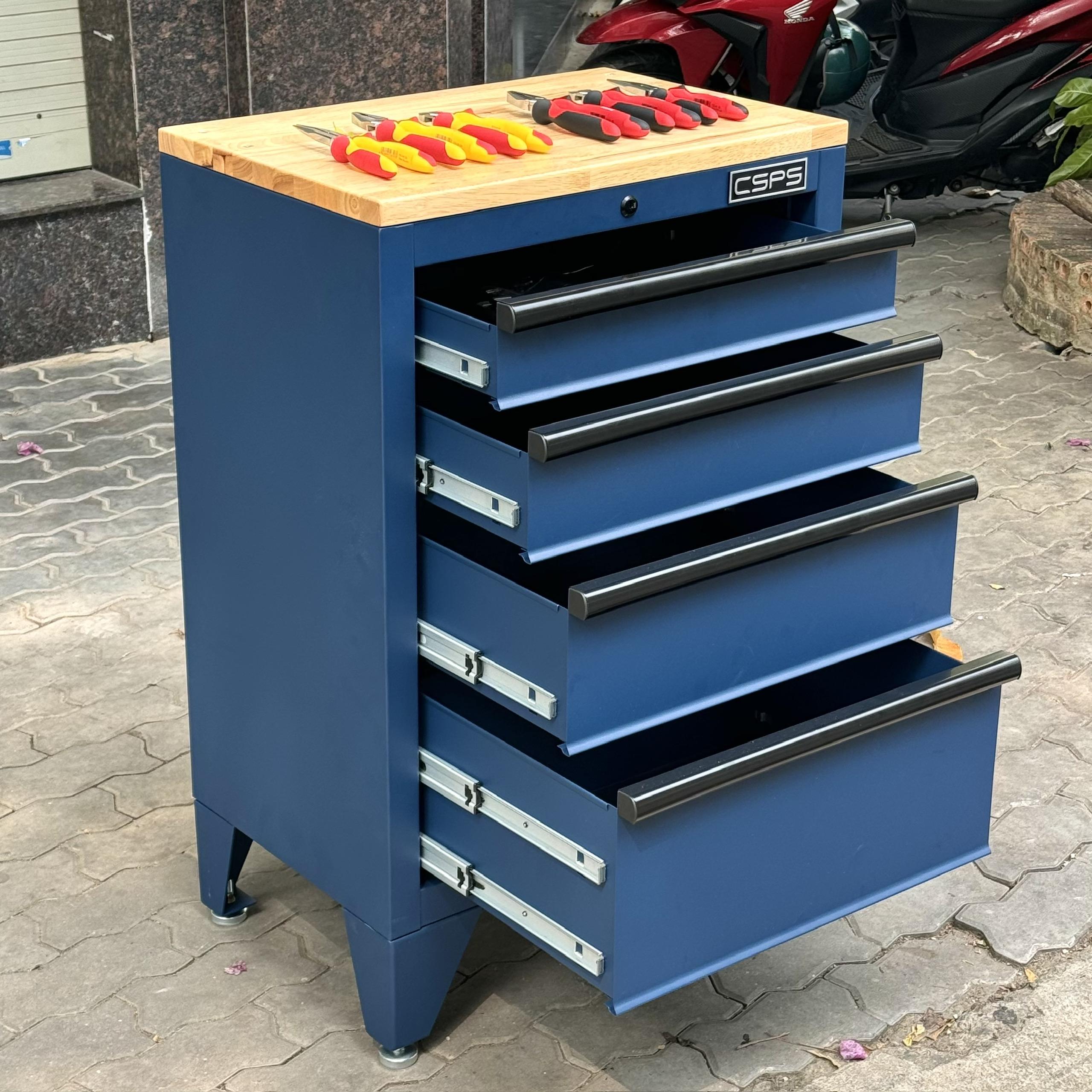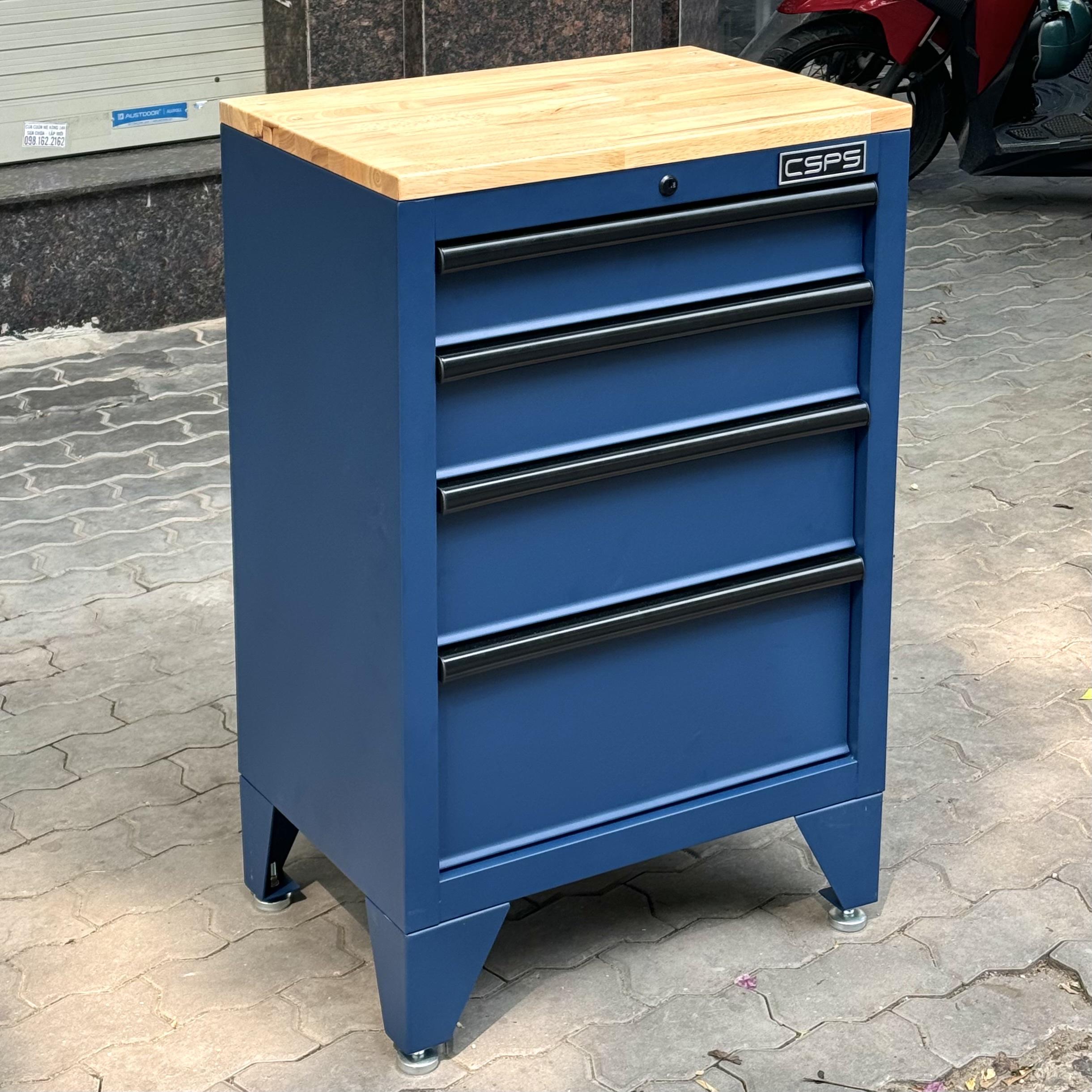 Tủ dụng cụ CSPS 61cm - 04 hộc kéo màu xanh dương kèm ván gỗ và chân tủ
