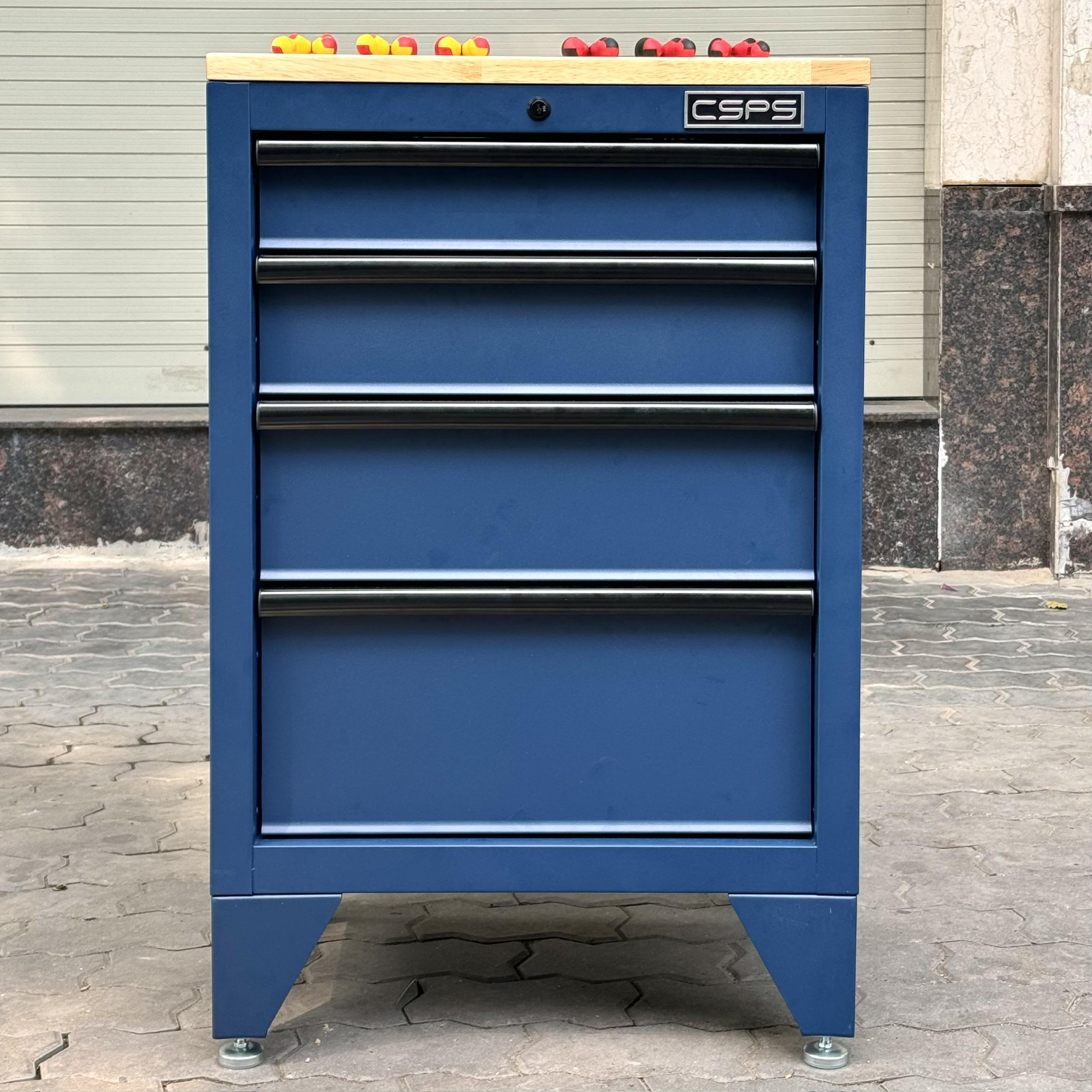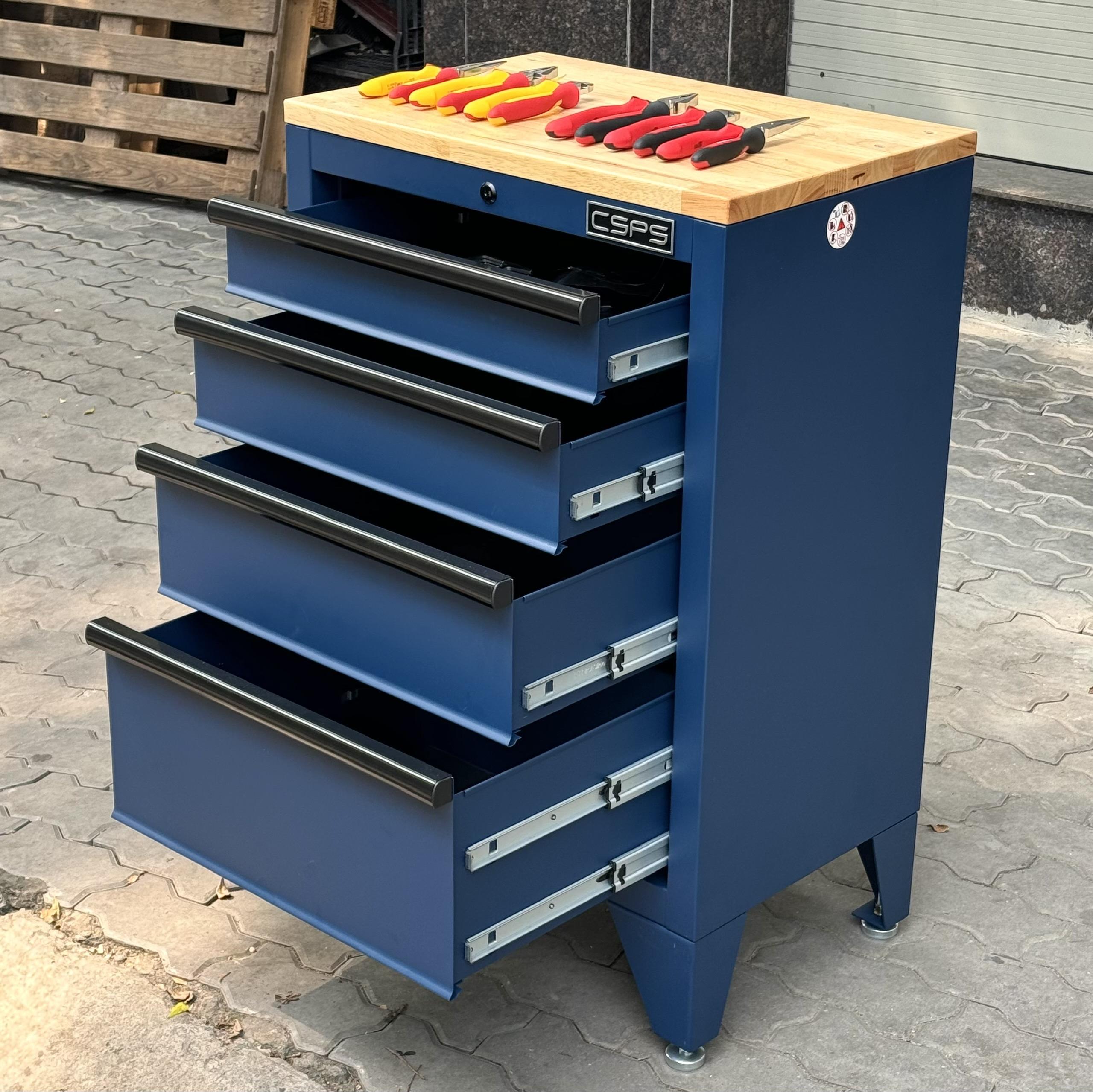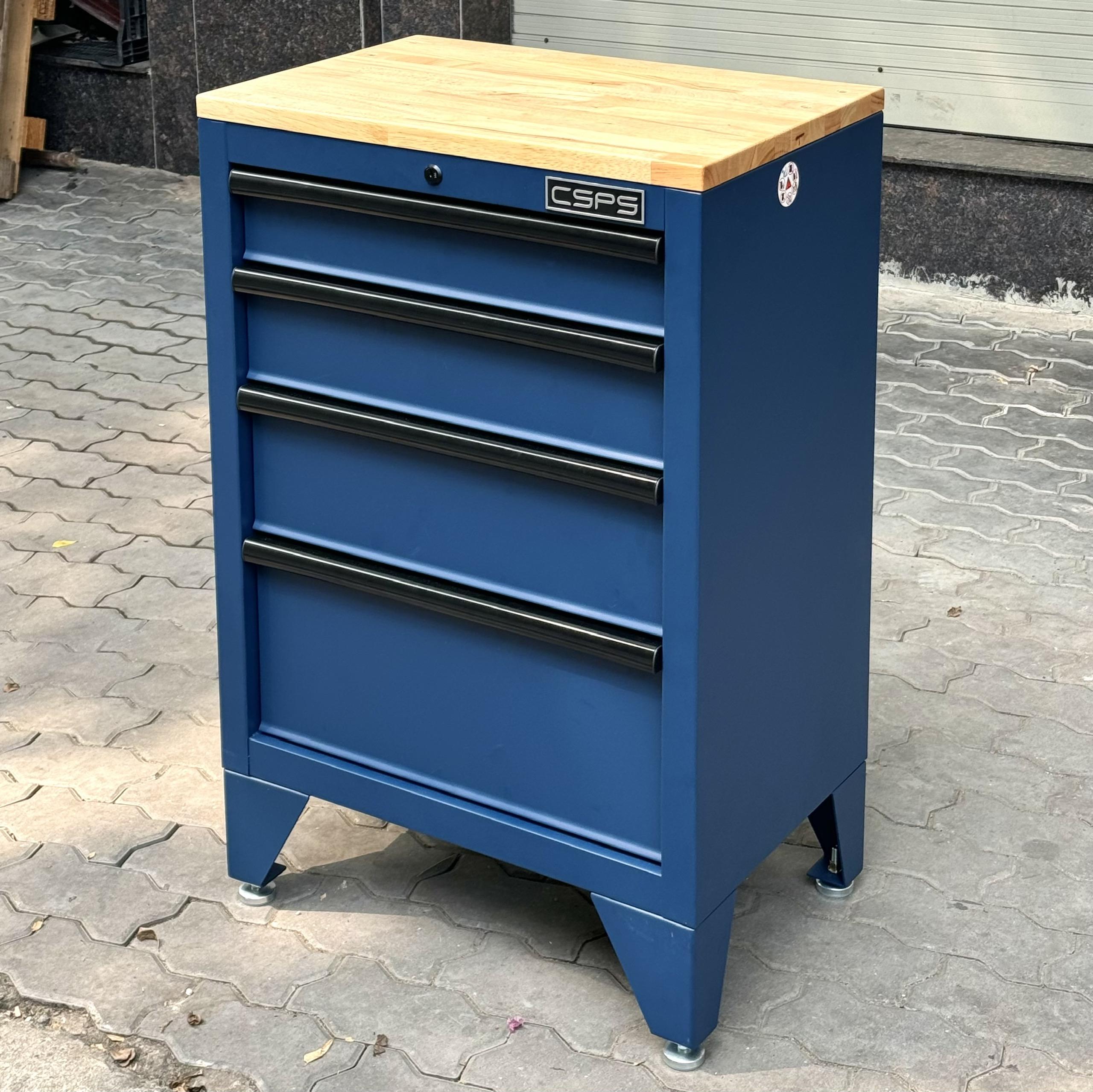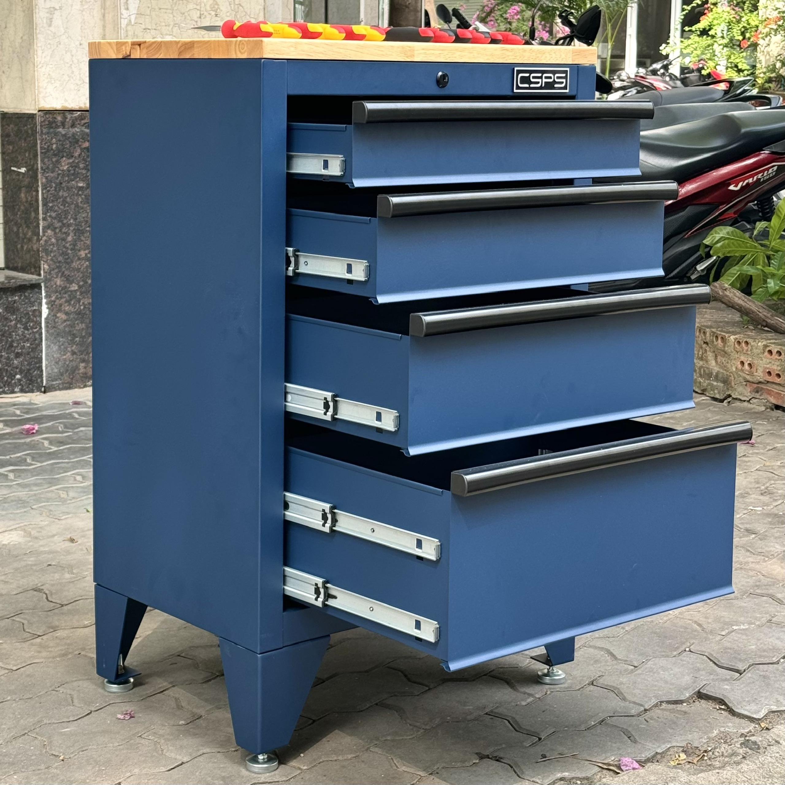 Tủ dụng cụ CSPS 61cm - 04 hộc kéo màu xanh dương kèm ván gỗ và chân tủ