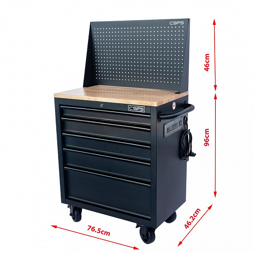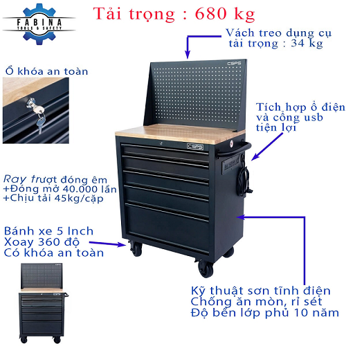 Tủ dụng cụ CSPS 76cm - 05 hộc kéo không nâng hạ màu đen kèm vách lưới