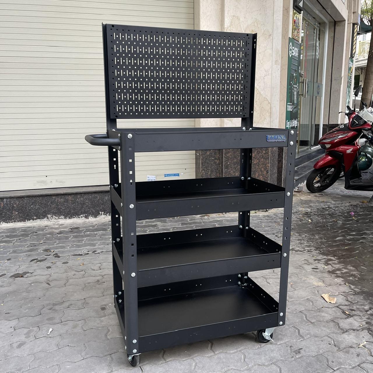 Black trolley 4 levels with Mesh walls Black (Height 980mm)