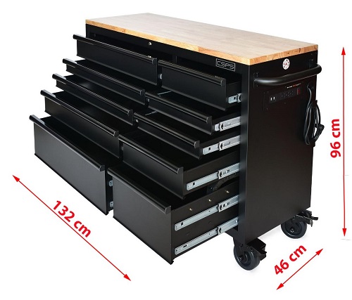 CSPS tool cabinet 132cm - 10 wooden plank drawers