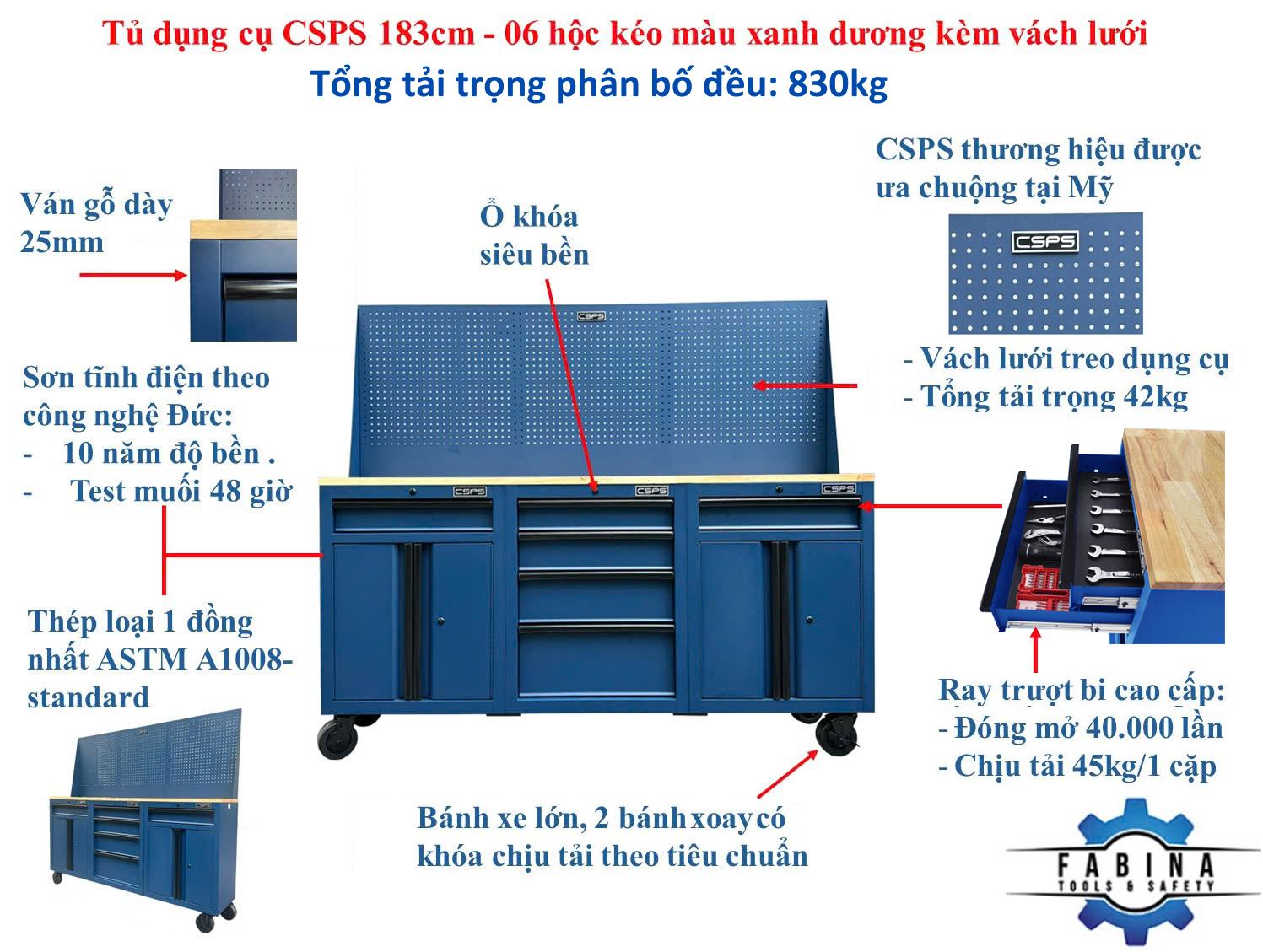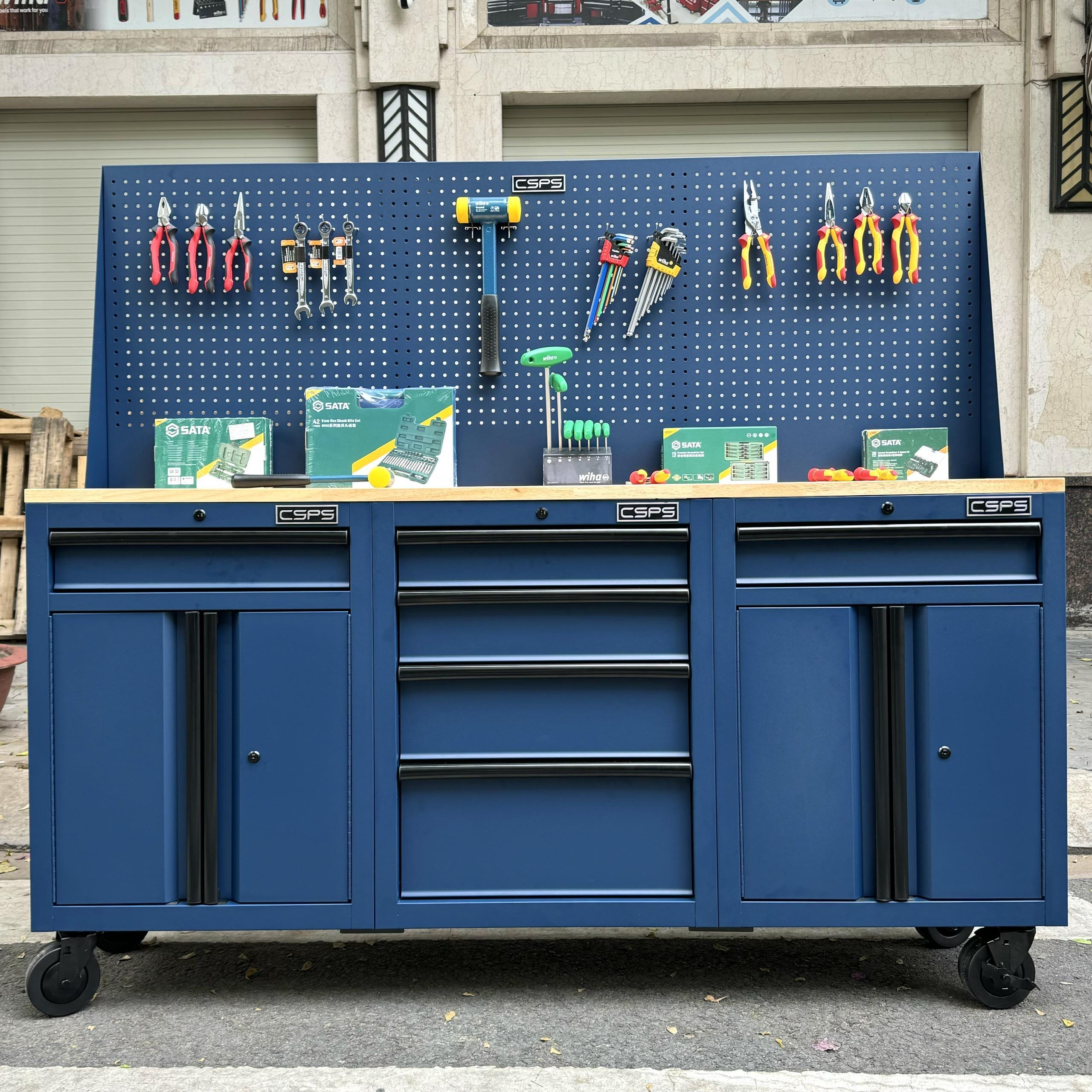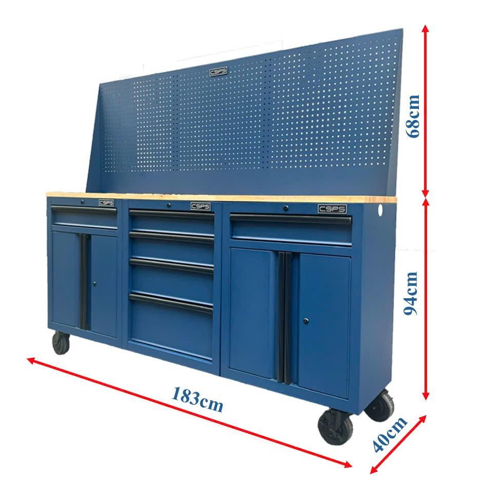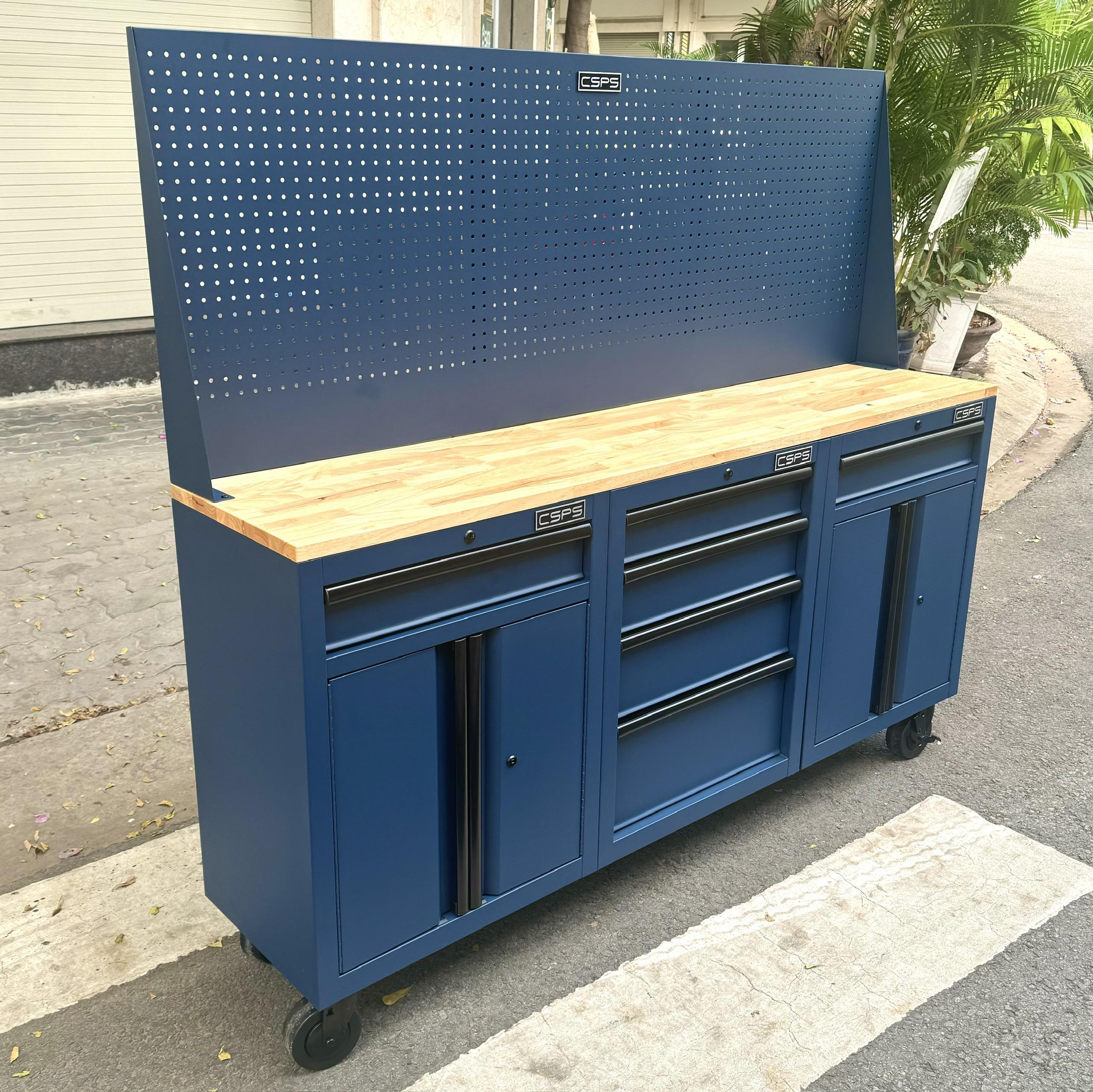 CSPS 183cm blue tool cabinets with wooden panel and mesh wall - 06 drawers