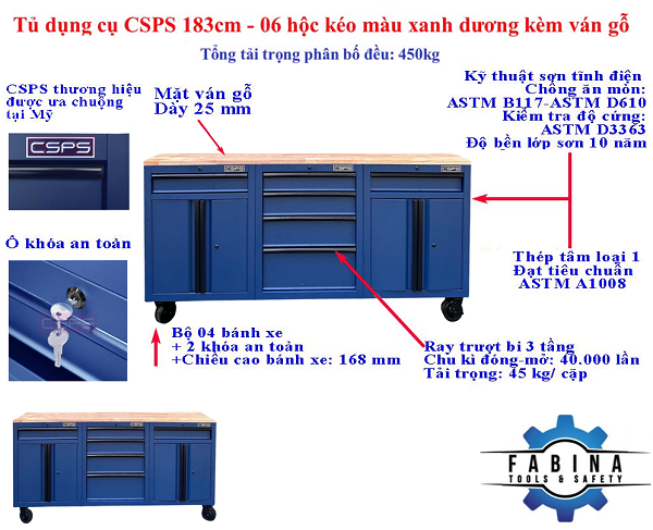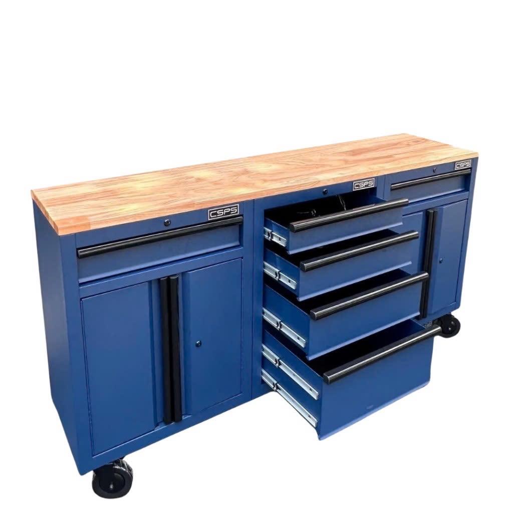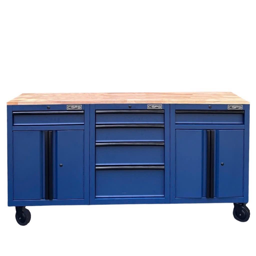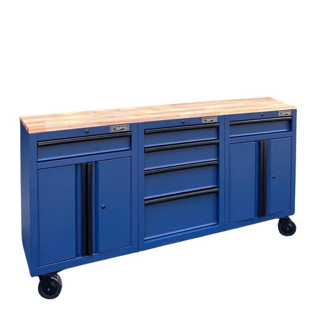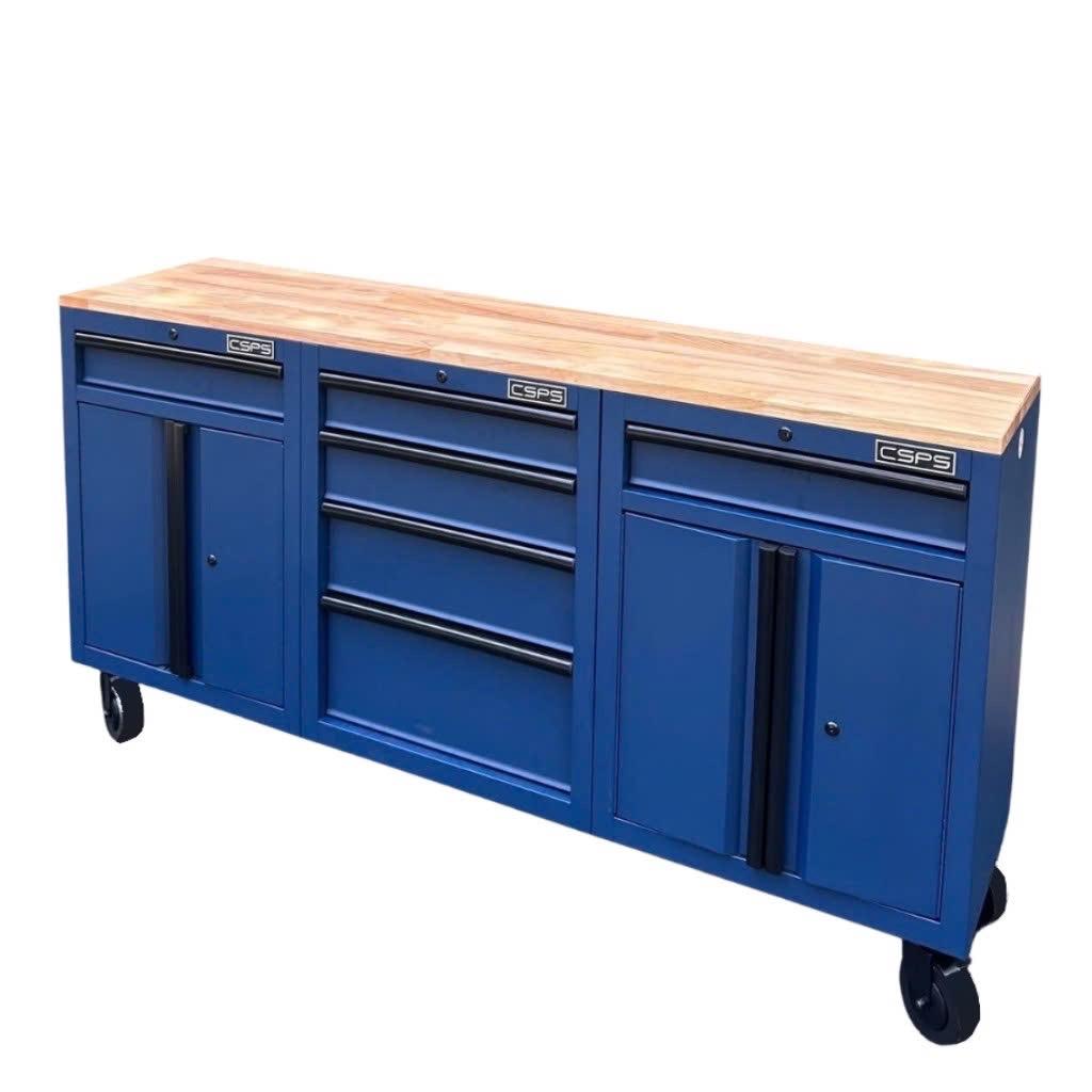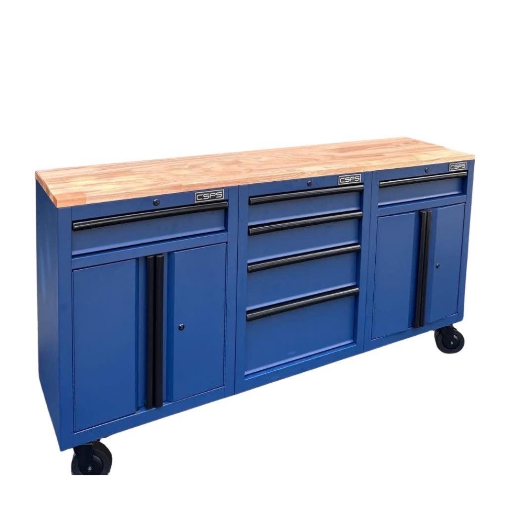 CSPS Blue Tool Cabinet 183cm with Wooden Top - 6 Drawers