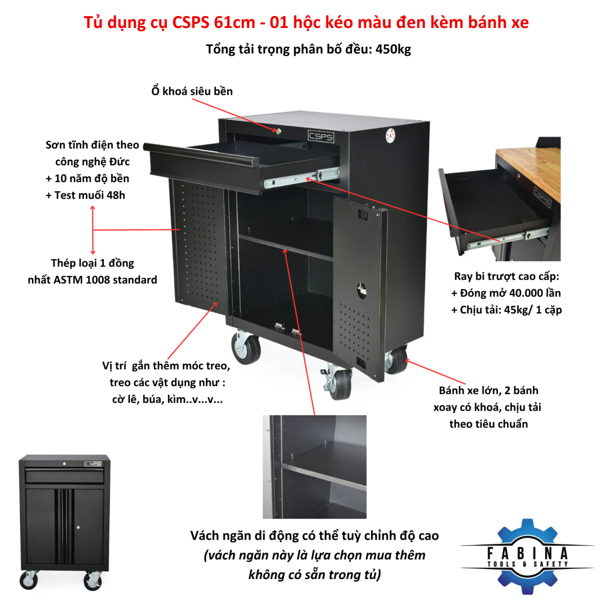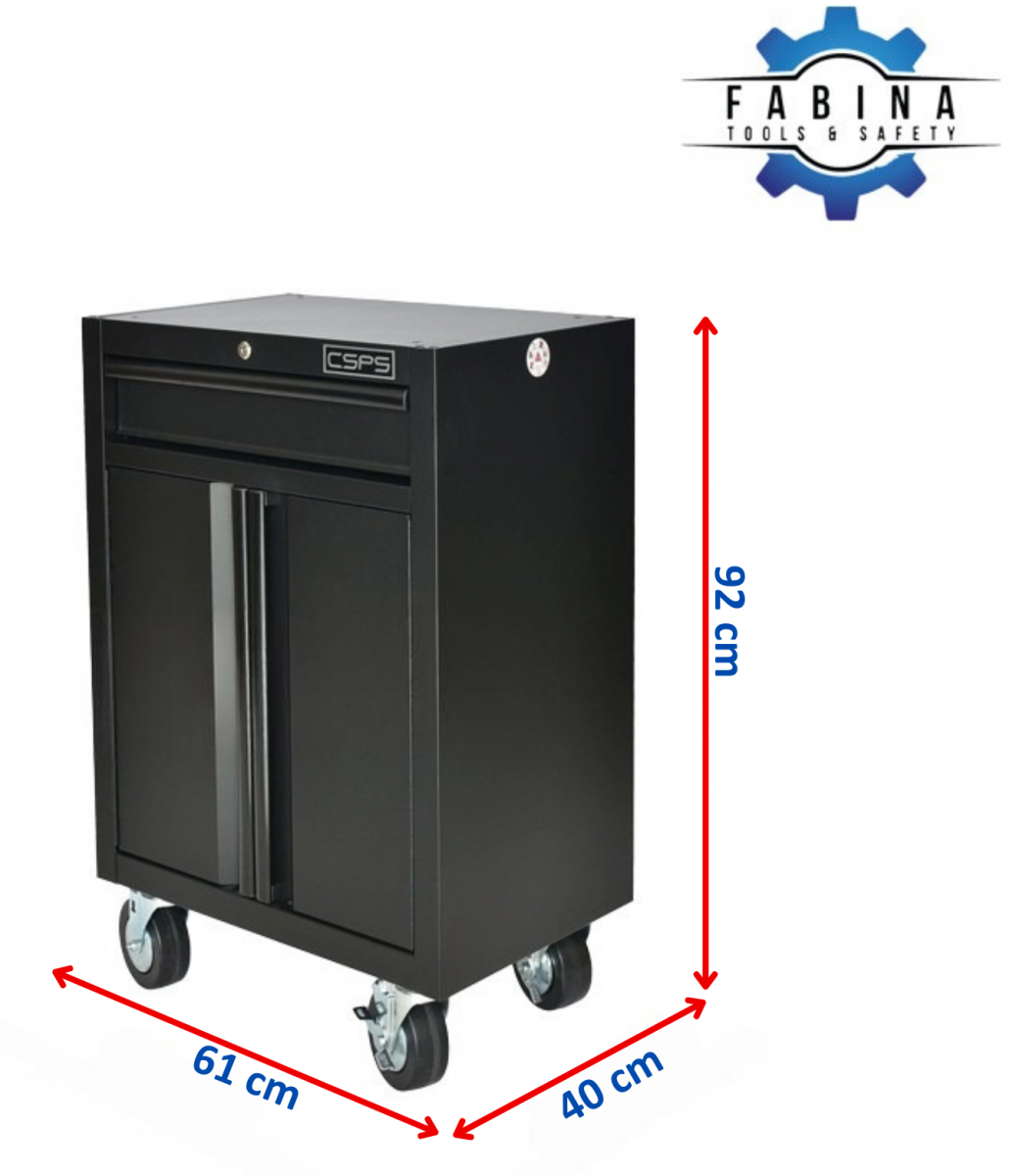CSPS 61cm Black Tool Cabinet – 1 Drawer with Casters (Black Handle)