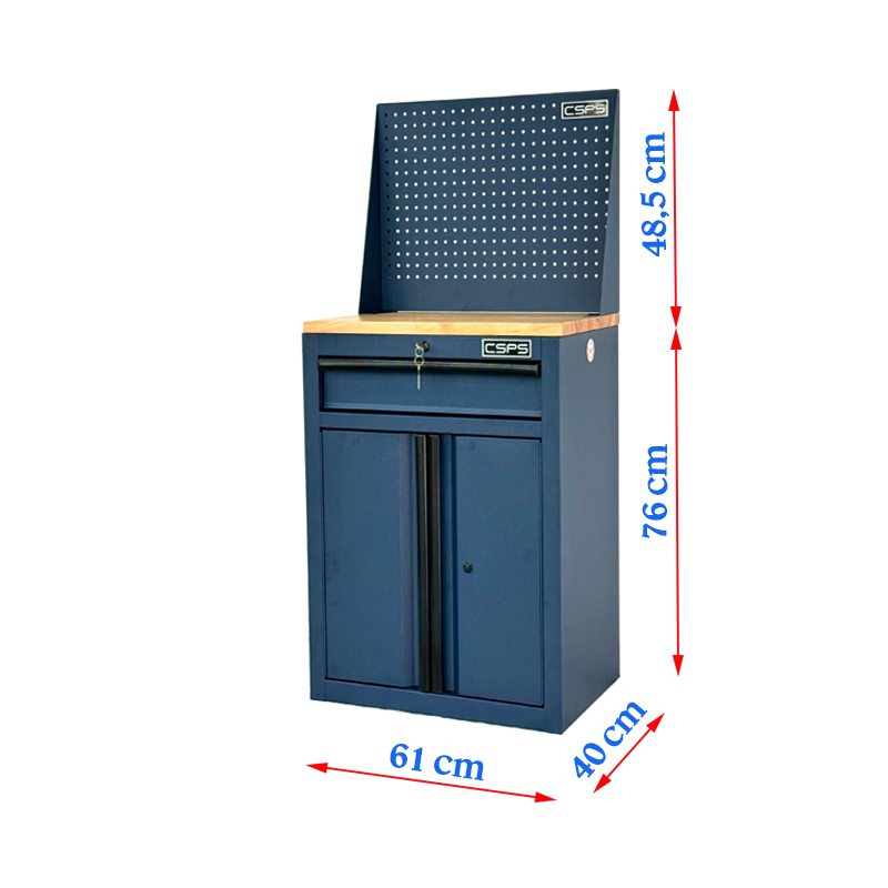CSPS Blue Tool Cabinet 61cm with Wooden Top and Pegboard – 1 Drawer