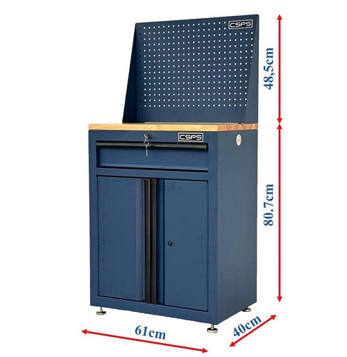 CSPS Blue Tool Cabinet 61cm with Wooden Top and Pegboard & leaving feet – 1 Drawer