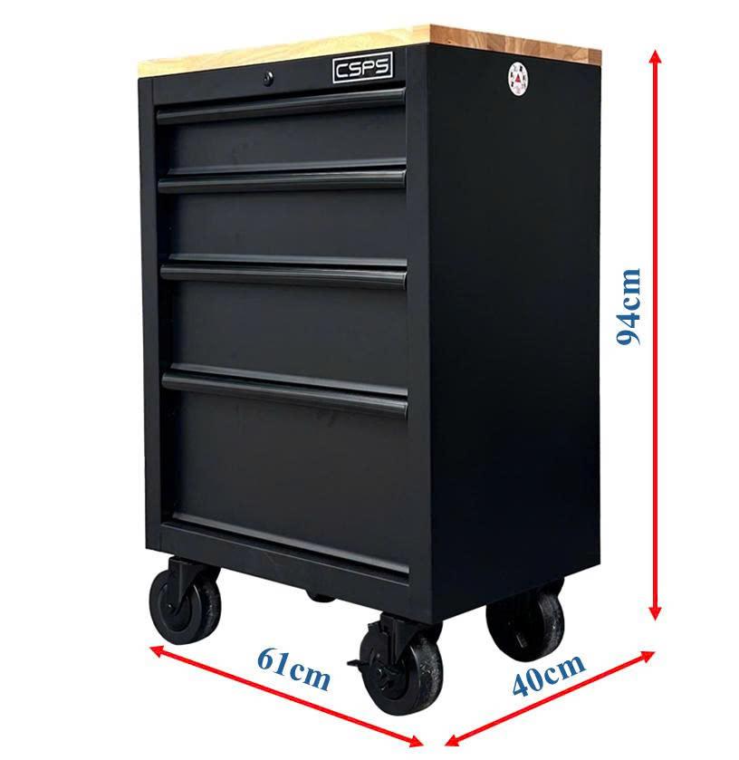 Black CSPS Tool Cabinet 61cm – 04 drawers with wooden top (black handles)