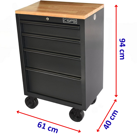 Black CSPS Tool Cabinet 61cm – 04 drawers with wooden top