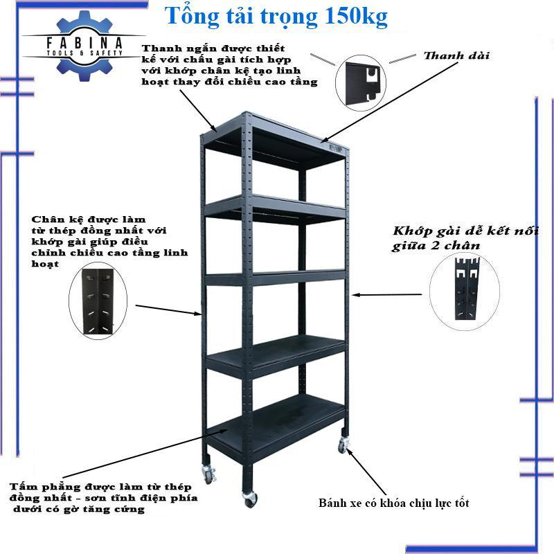 Kệ có bánh xe 5 tầng đa năng 100cmx45cmx192cm màu đen FABINA