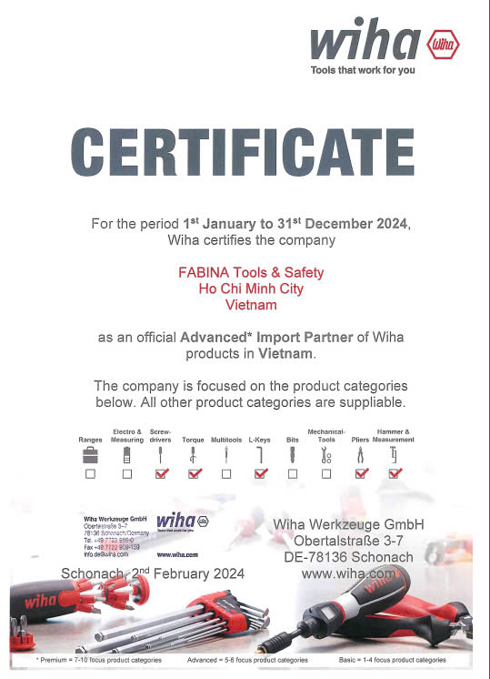 FABINA đang có nhu cầu tìm đại lý cho các sản phẩm kìm, tua vít và dụng cụ cầm tay thương hiệu Wiha trên cả nước.