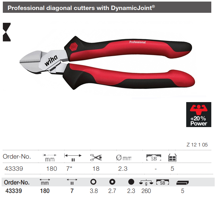 Thiết kế khớp kìm Wiha 26710 & kìm Wiha 43339 ứng dụng công nghệ DynamicJoint® giúp tối ưu 20% lực bóp từ tay người dùng xuống lưỡi cắt, giảm mỏi tay tăng hiệu quả cắt