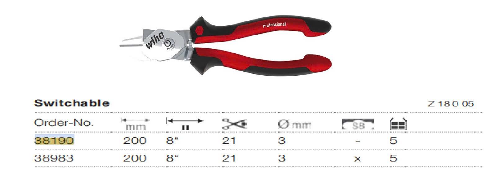 Kìm cắt cộng lực Wiha 38190 200mm nút bấm Bicut