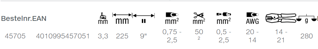 The Wiha 45705 belongs to Wiha’s Professional Electric line. All pliers are tested and certified to the IEC 60900 insulation standard, ensuring user safety when working in electrical environments up to 1,000 V AC.