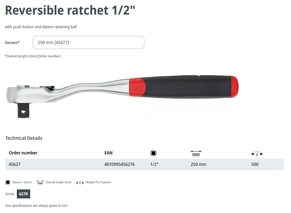 - The robust reversible ratchet allows safe working and can withstand loads far beyond the DIN requirements up to a torque of 768 Nm.