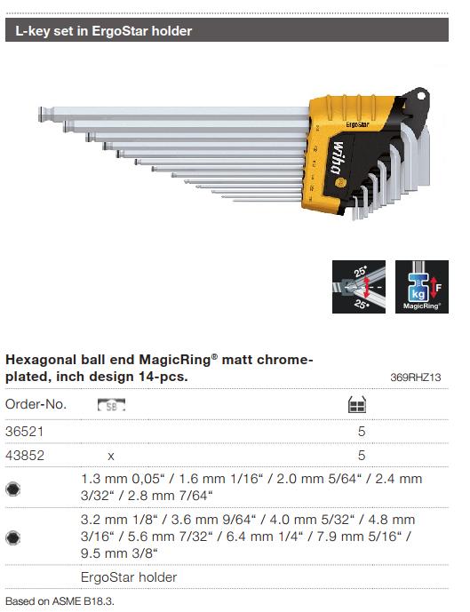- 1x Cờ lê đầu bi lục giác MagicRing®, phiên bản inch, mạ crôm mờ 9/64" (24304)